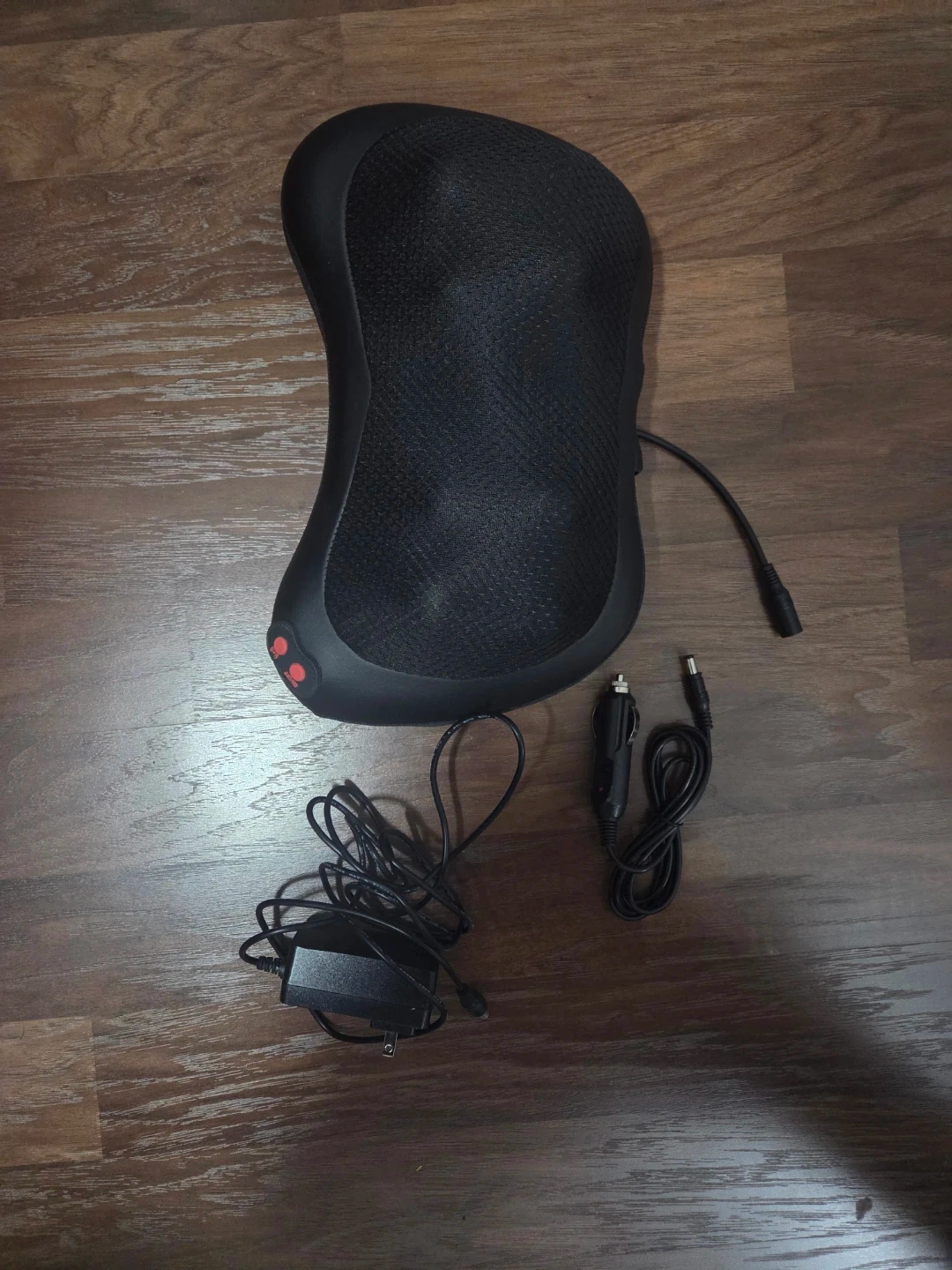 Selling a shiatsu massage pillow in black. It comes with the charger and car adapter. Can be used in home office or car