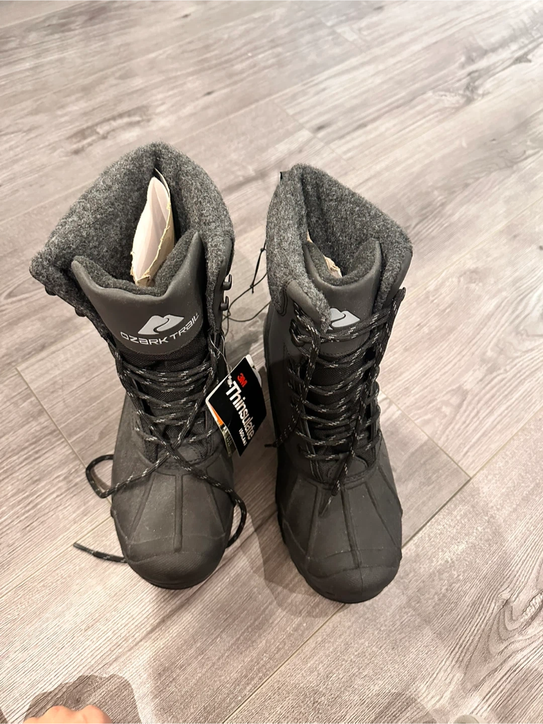 Selling a pair of Ozark Trail winter boots in size 9. They feature 3M Thinsulate insulation to keep your feet warm and cozy during the colder months. These boots are perfect for outdoor activities and snowy weather.