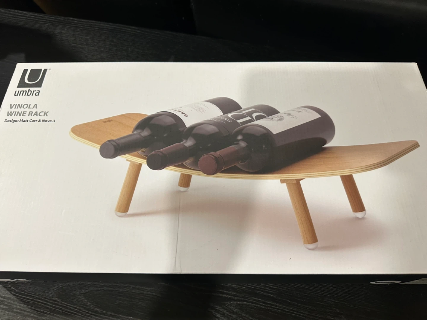 Selling a brand new Umbra Vinola Wine Rack! This rack is designed by Matt Carr & Nove.3. It measures approximately 19 3/4 x 8 x 5 1/8 inches (50 x 20.3 x 13.1 cm). It's still in its original packaging and ready for your home