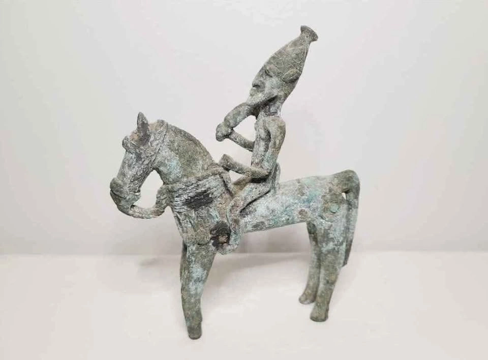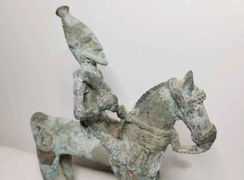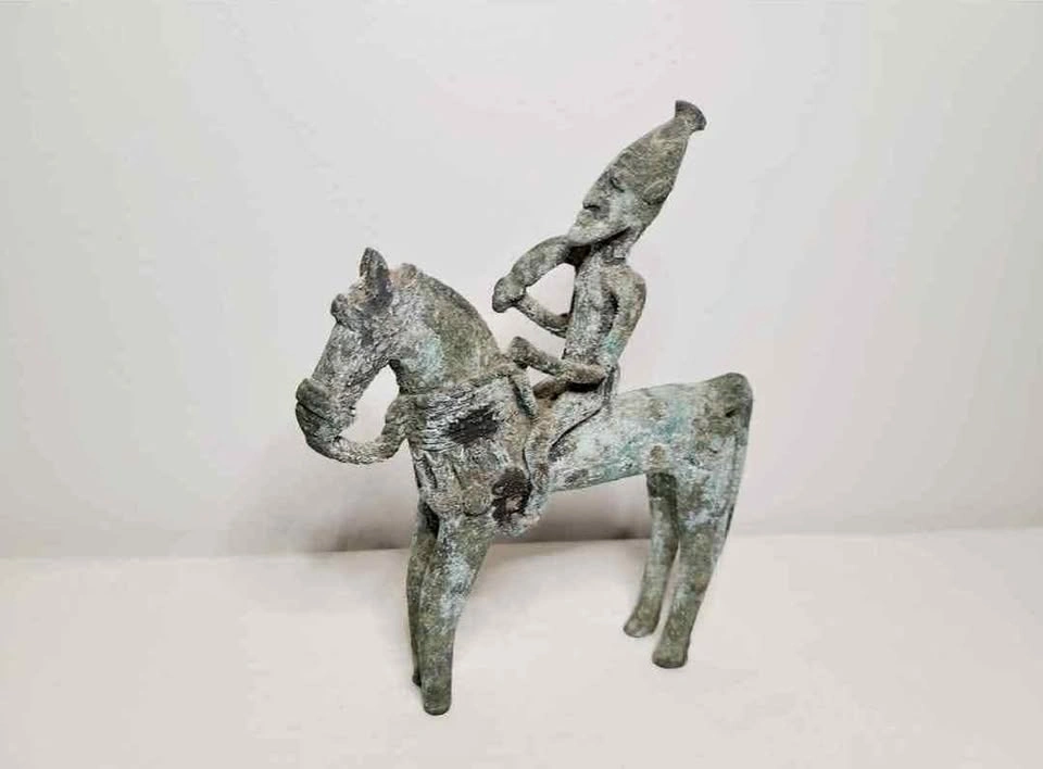 60The sculpture is a vintage African cast bronze horse and rider from the Dogon people of Mali, West Africa, likely from the 19th century due to the amount of oxidation. It was obtained from an estate sale here in Ottawa along with my other Gouache paintings (see other listing). I was told it was picked up close to Mali in the 60's. Again it's date looks to be much older than when it was purchased. The Dogon are an ethnic group located mainly in the administrative districts of Bandiagara and Douentza in Mali, West Africa. The precise origin of the Dogon, like those of many other ancient cultures, is undetermined. They have lived in Mali since the 15th century, wedged between two seemingly infinite bodies, the Sahara below and the universe above. Their sculpture, especially the figurative iron, bronze, and brass casting by blacksmiths, constitutes one of the most remarkable artistic traditions of West Africa, reaching back to the period of the great Empire of Mali as early as the 12th century, with a rich variety of sculptural styles and subject matter. In many West African traditional communities, blacksmiths enjoyed a privileged position, as they master the elements earth, air and fire. It is the blacksmith who makes โmagicโ figures, casts protective amulets, and instills power and meaning into objects they are commissioned to create. While working, they go into a sort of spell and commiserate with their ancestors. In a sense, they summon their muse. The art of the Dogon deals with the complex ensemble of myth and its regulation of the life of the individual. In Dogon society, horses were generally considered a luxury reserved for rich or powerful people. Horses also occur in Dogon beliefs about the creation of the world, where horse and rider figures are seen as a symbol of a mythological personage. The horse is incorporated into many ceremonial and functional sculptures, and equestrian figures are common in Dogon art, with the bronze figure sharing the long tradition of figurative iron, bronze, and brass casting by blacksmiths in West Africa. ๐ Located near Walkley Rd. and Bank St. ๐ Can also meet near Carling Ave and Bronson Ave most weekdays between 10am - 3pm.