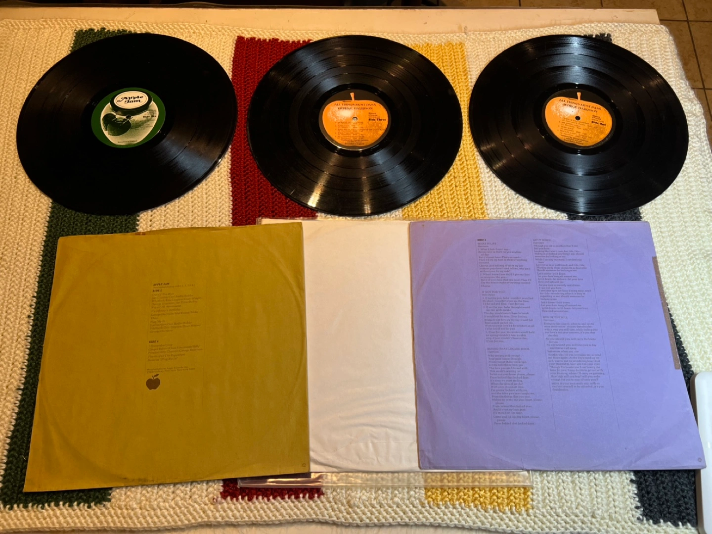 13RARE and ORIGINAL George Harrison Apple jam all things must pass three LP set in original sleeves no cover. In very good condition.