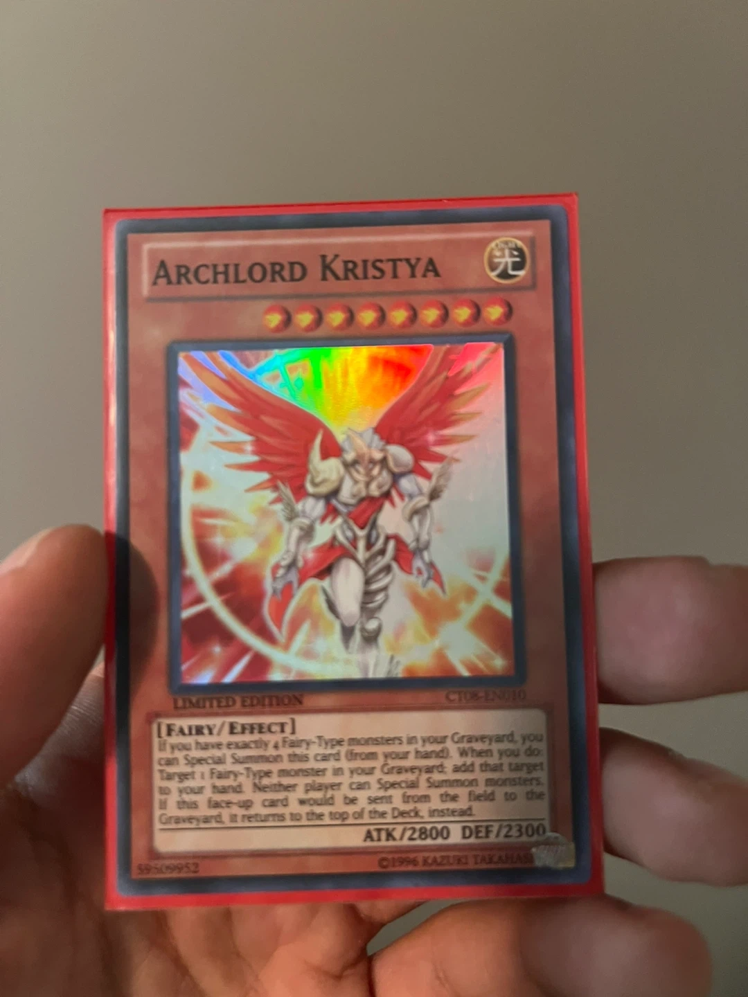 65A selection of Yu-Gi-Oh! trading cards for sale. Includes Gachi Gachi Gantetsu, Avenging Knight Parshath, Master Hyperion, Stardust Dragon, and Archlord Kristya.