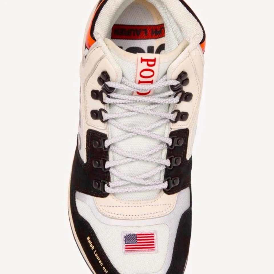 65Polo Ralph Lauren - Train 100 Mid Sneaker NWT is one of a kind street style train/sneaker. True to style and Size 10D/ Round Toe with Bumper / Contrasting Construction/ Logo Details / Heel Pull Tab / Lace Up Closure / Padded Footbed / Grip Sole with White Mid Sole. Color - Blue White Red Style #809712534017