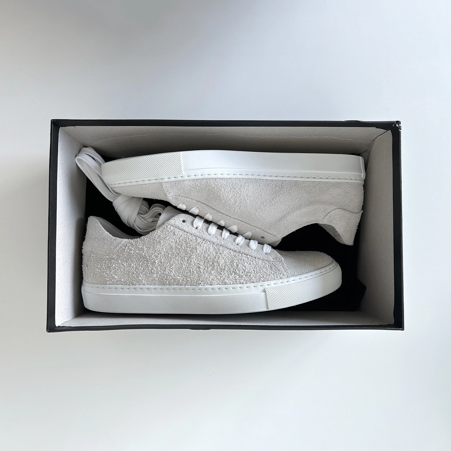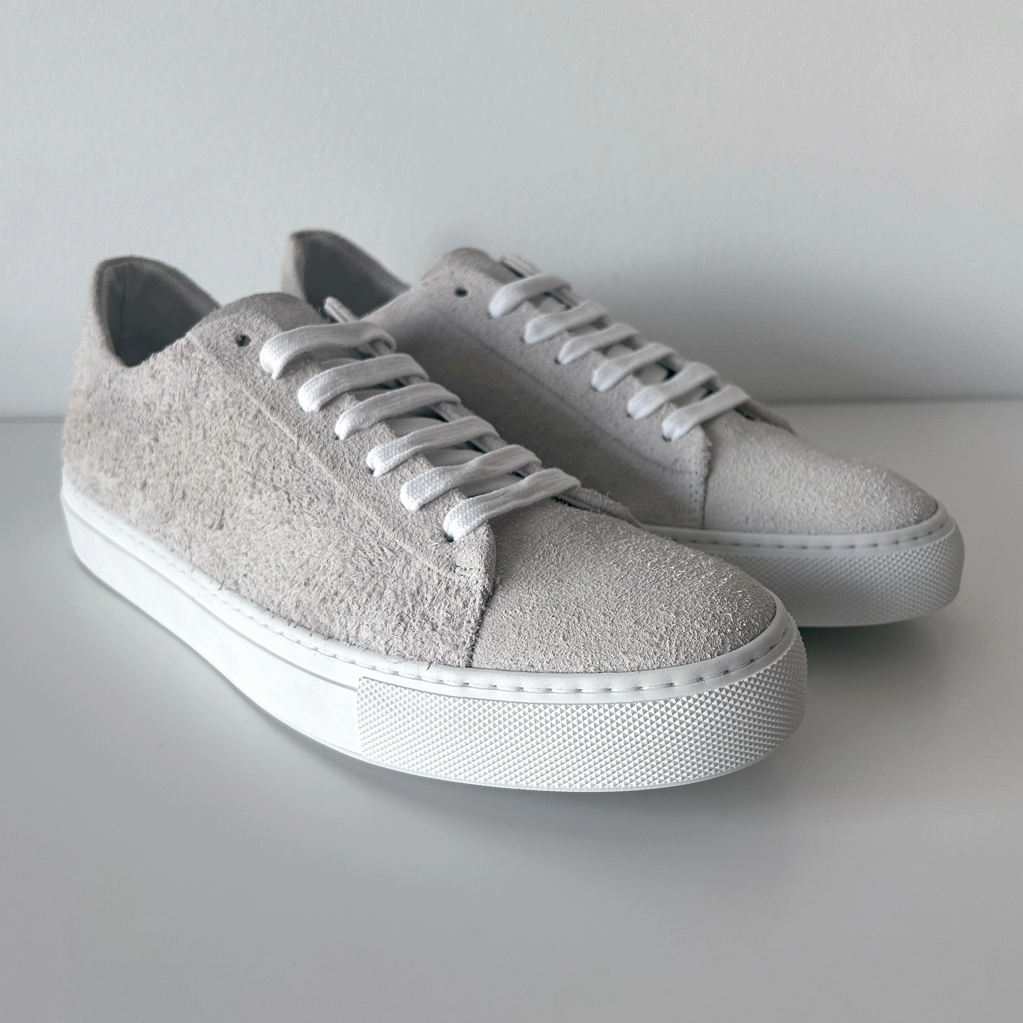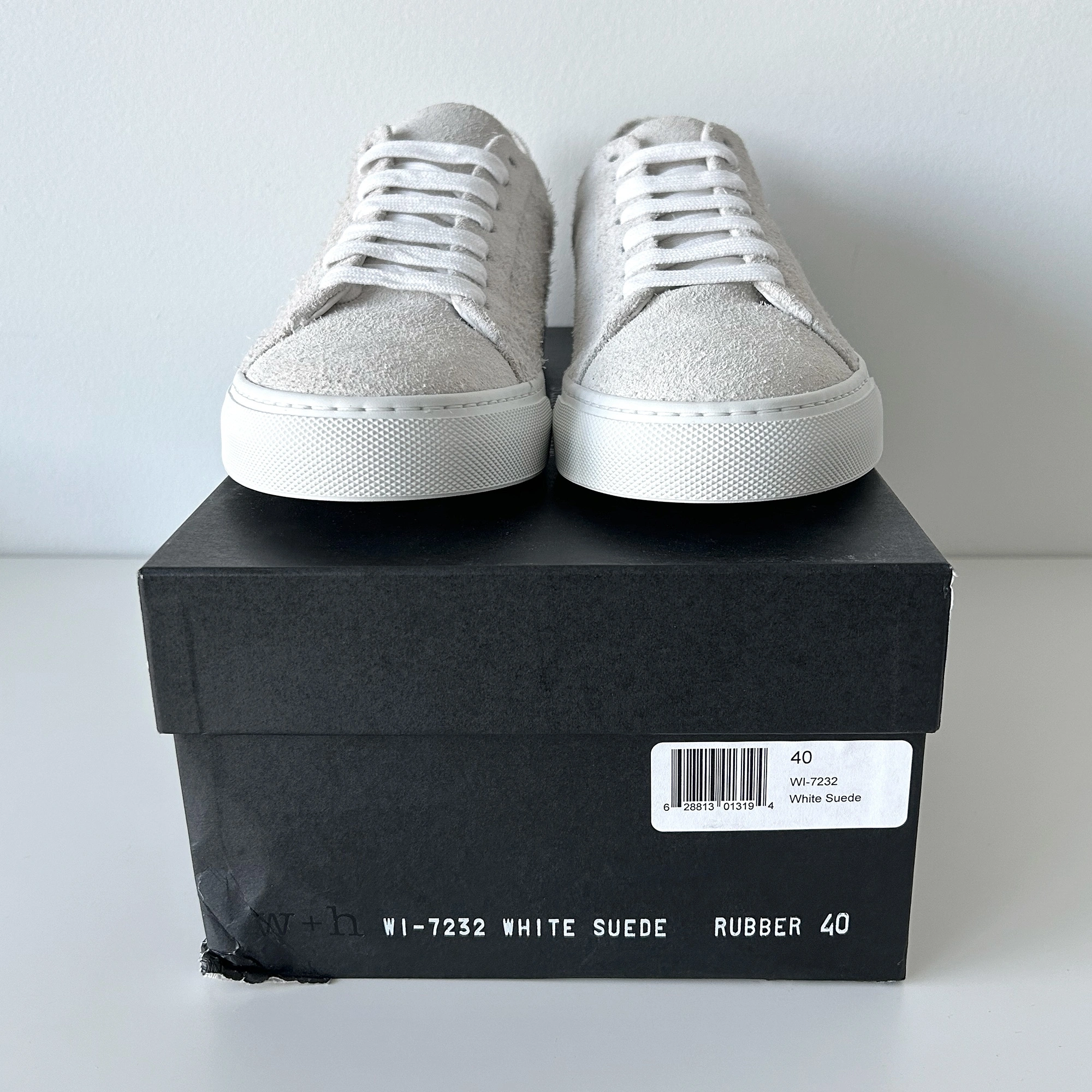 10The item is in brand-new condition. It's from the SS17 collection and was originally going for $486 CAD. The shoes are crafted from premium Italian leather, offering a refined take on the classic low-top. Inspired by vintage basketball shoes, it features a minimalist design highlighting its hairy suede calfskin leather. Complete with a full leather lining, durable cotton laces, removable insoles, and an Italian Margom rubber sole. SIZE: US 8 / EU 40 MINOR DEFECTS: Calfskin textures on each pair vary slightly (See Photo 9) Damaged Box (See Photo 10) Available for in-person transactions only. Pickup available at PriceSmart (9899 Austin Rd) near Lougheed Station.