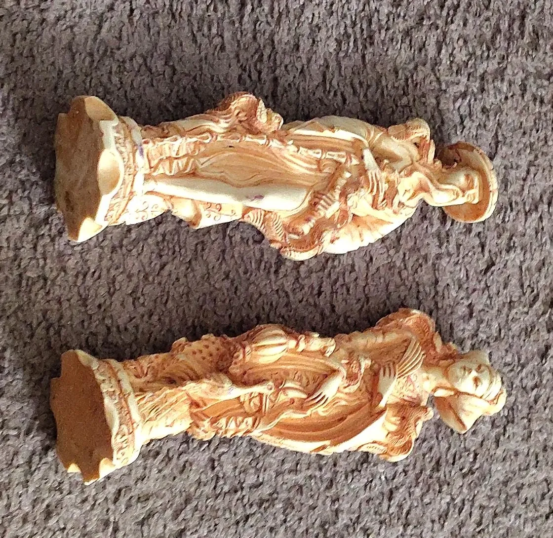 This is a set of two vintage figurines, each depicting a cherub. They're crafted in an ivory tone resin material. The figurines have intricate detailing, showing flowing robes and delicate features.