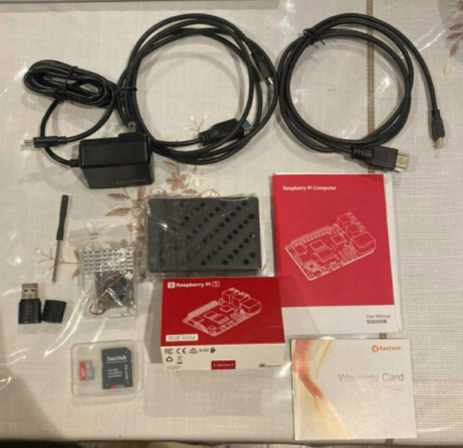 10RasTech Raspberry Pi 5 8GB RAM Starter Kit - 64 -bit Quad-Core Edition. Kit Includes: -Raspberry Pi 5 Model Board (8 GB RAM) -RasTech 27 W USB-C Power Supply -SanDisk Ultra 64 GB Card -SanDisk microSD Adapter -HDMI to Micro HDMI Cables x 2 -microSD card reader (USB adapter) -Case for Raspberry Pi -Cooling Fan -Screwdriver -User Manual $200 Or Best Offer. I have two of these kits available
