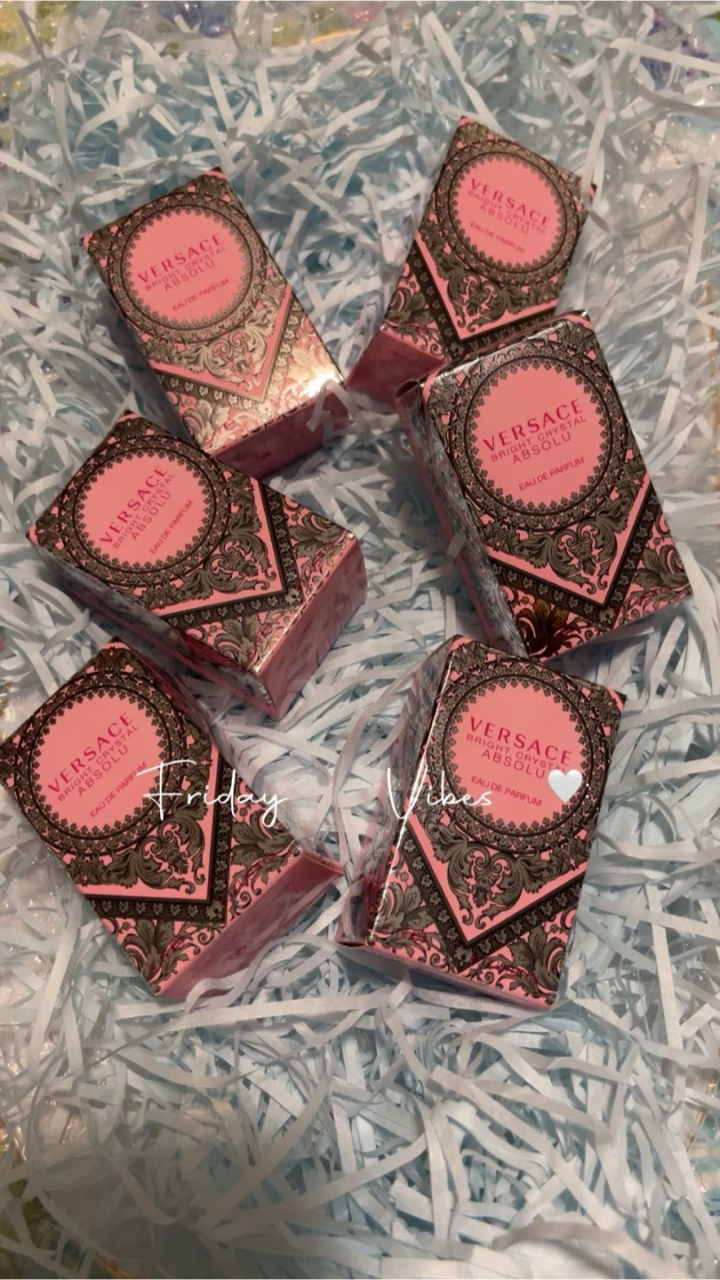 These are Versace Bright Crystal Absolu Eau de Parfum bottles. They come in their original packaging. This fragrance is perfect for any occasion! Luxury Mini Perfumes Available β¨