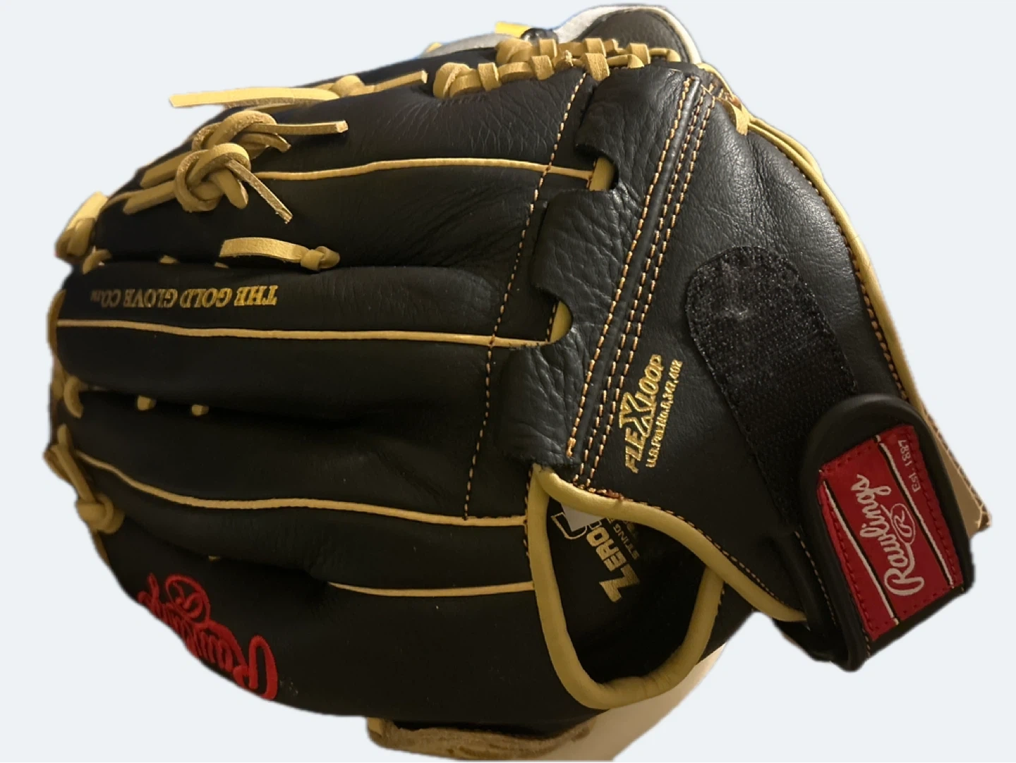 Here's a Rawlings baseball glove, from The Gold Glove Co. line! It features FLEXLOOP and ZERO STING technology, so you can catch with confidence. Perfect for baseball enthusiasts!