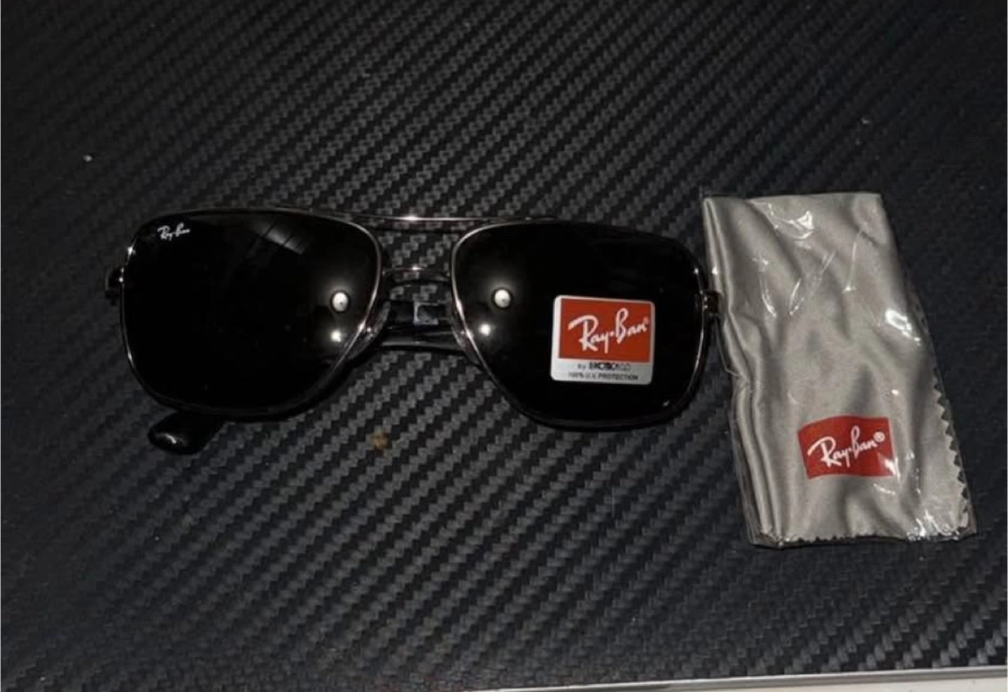 Selling a pair of Ray-Ban aviator sunglasses. They come with a Ray-Ban cleaning cloth