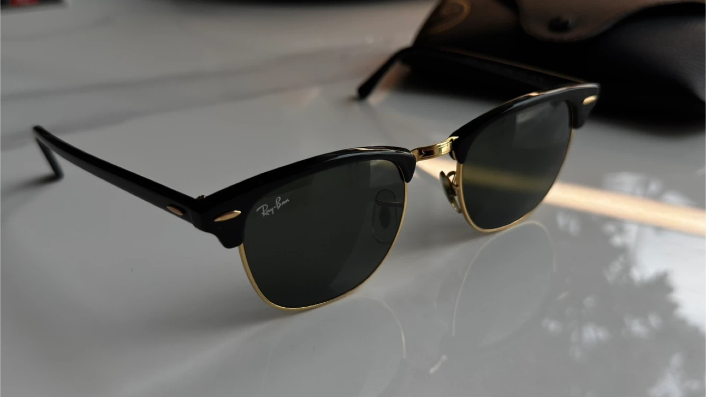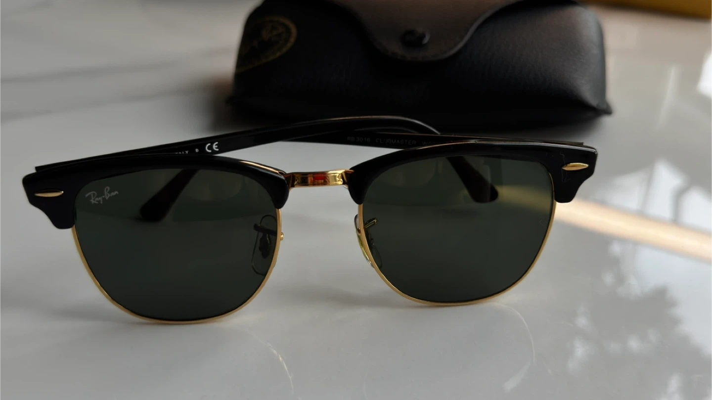 124Ray Ban CLUBMASTER Classic Gold Model: RB 3016 Size: Medium 51•21 Frame Polished Black On Gold Good condition 7/10 Location Islington and Bloor