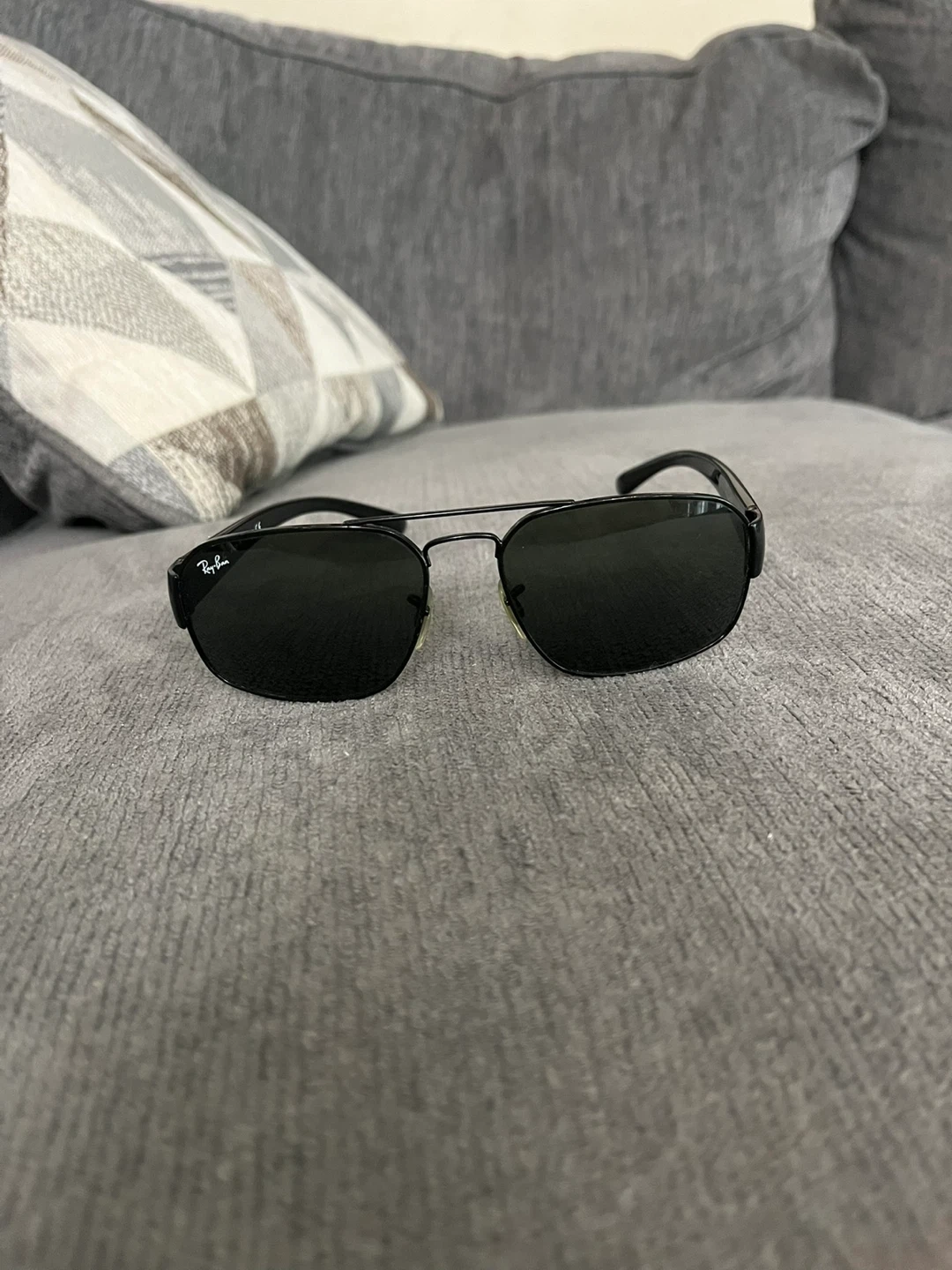 10Selling a pair of Ray-Ban sunglasses in black. They're in great condition and ready for a new home!
