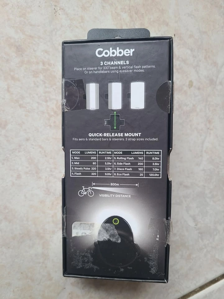 Knog (Mid) Cobber front bike light, 320 lumens. Excellent condition. Opened and cycled through the light options, but never installed on a bike. I bought the front and rear light together, but already have a front light, so I don't need this one. You can google this light to learn more about its features and how to program the light options. Pickup near Keele and Rutherford in Maple (Vaughan).