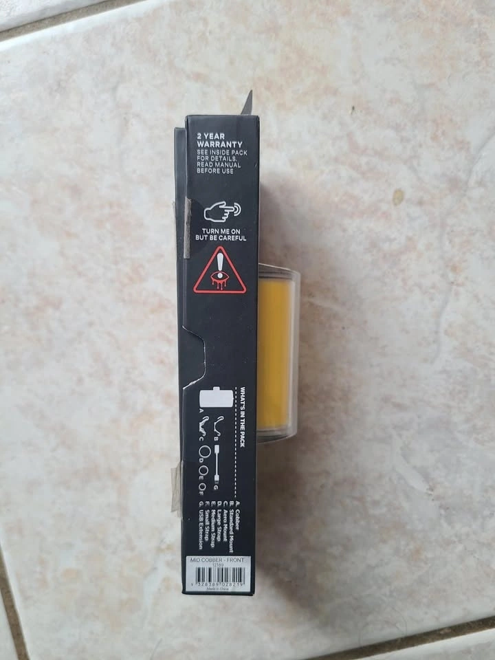 Knog (Mid) Cobber front bike light, 320 lumens. Excellent condition. Opened and cycled through the light options, but never installed on a bike. I bought the front and rear light together, but already have a front light, so I don't need this one. You can google this light to learn more about its features and how to program the light options. Pickup near Keele and Rutherford in Maple (Vaughan).