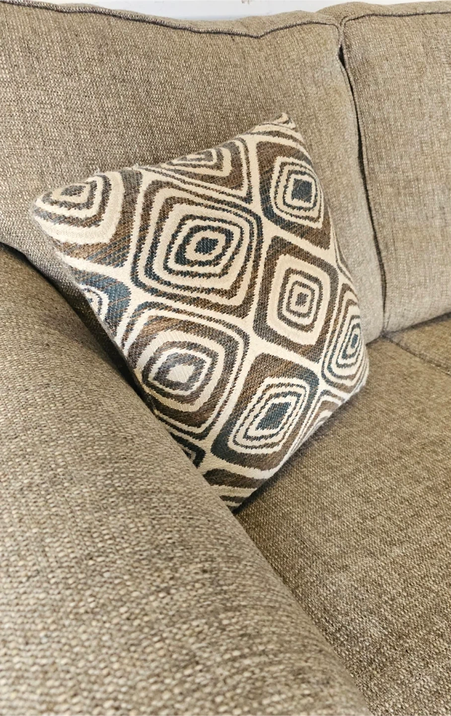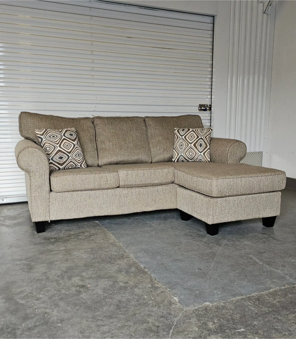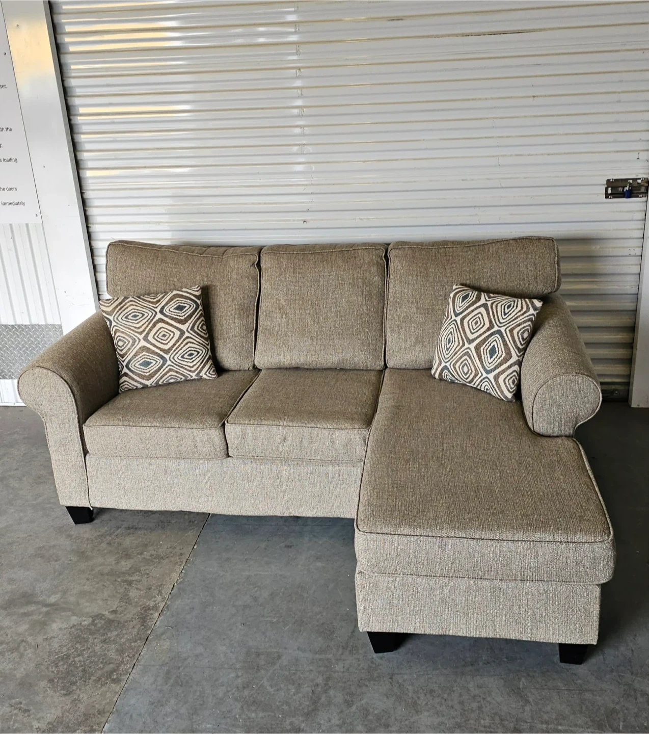 Super comfortable fully reversible 3 seater lounge sofa - color tan/oatmeal -82" x 62 chaise