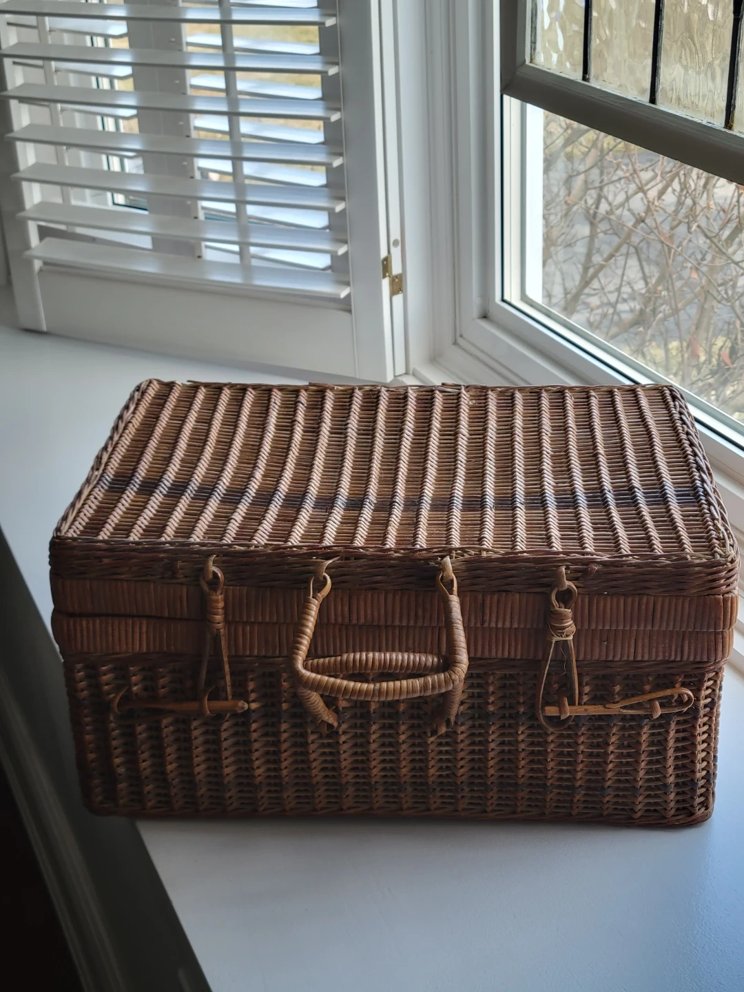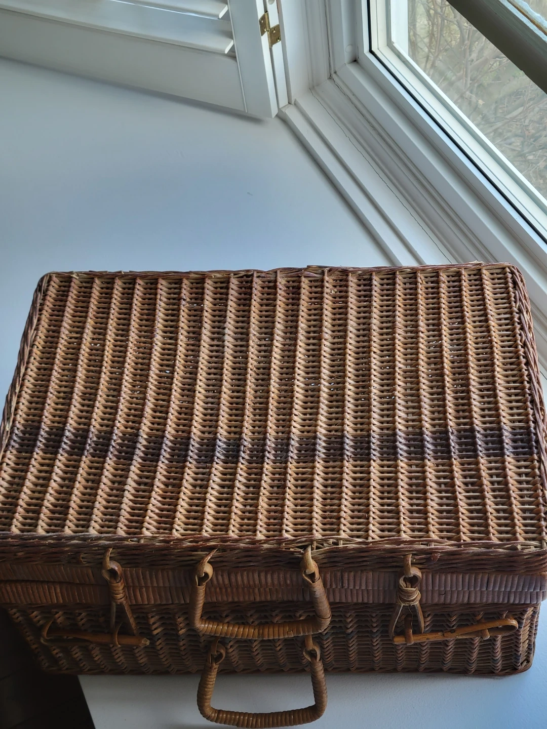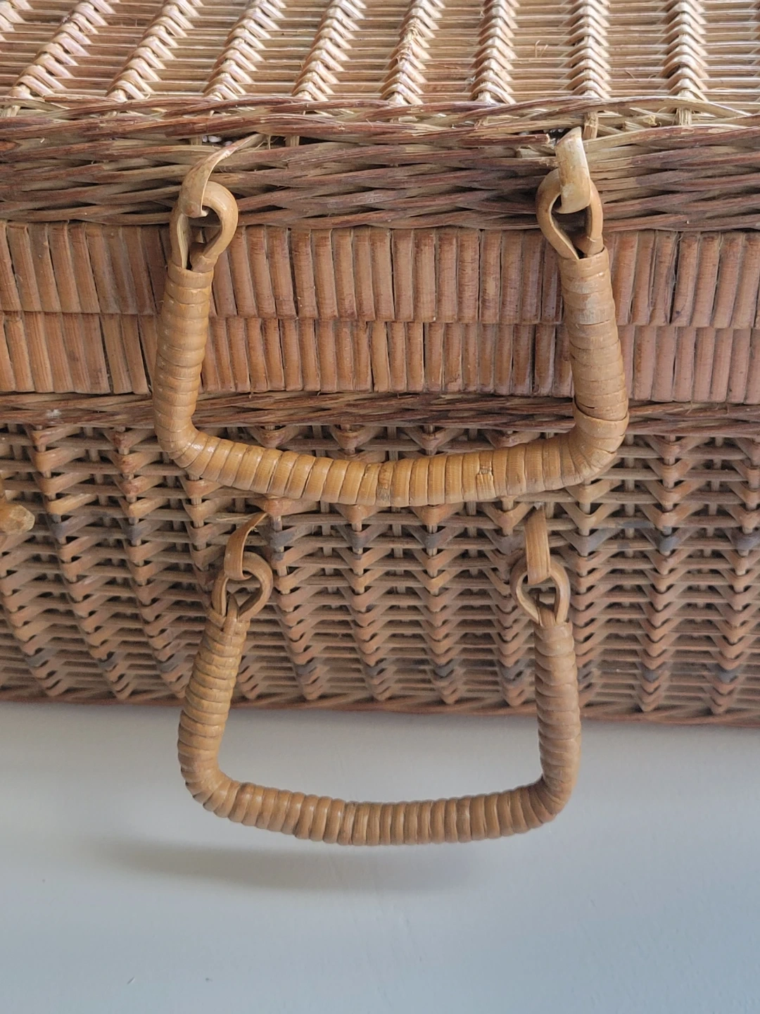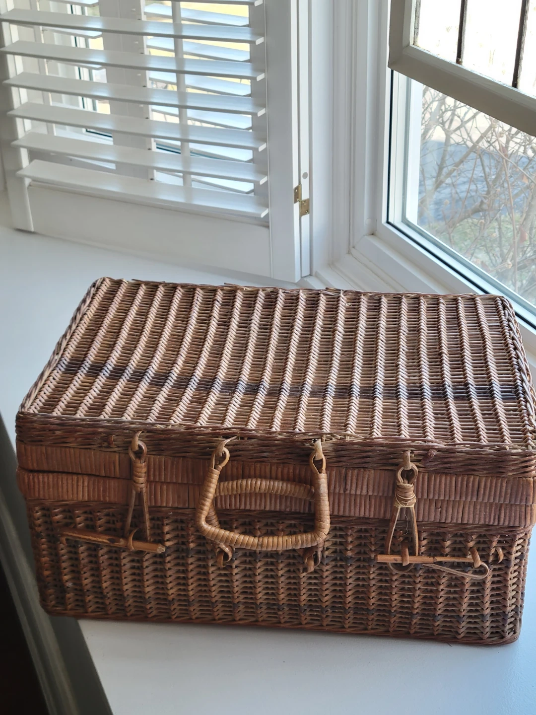 Vintage Wicker Picnic Basket. Wicker Storage Basket