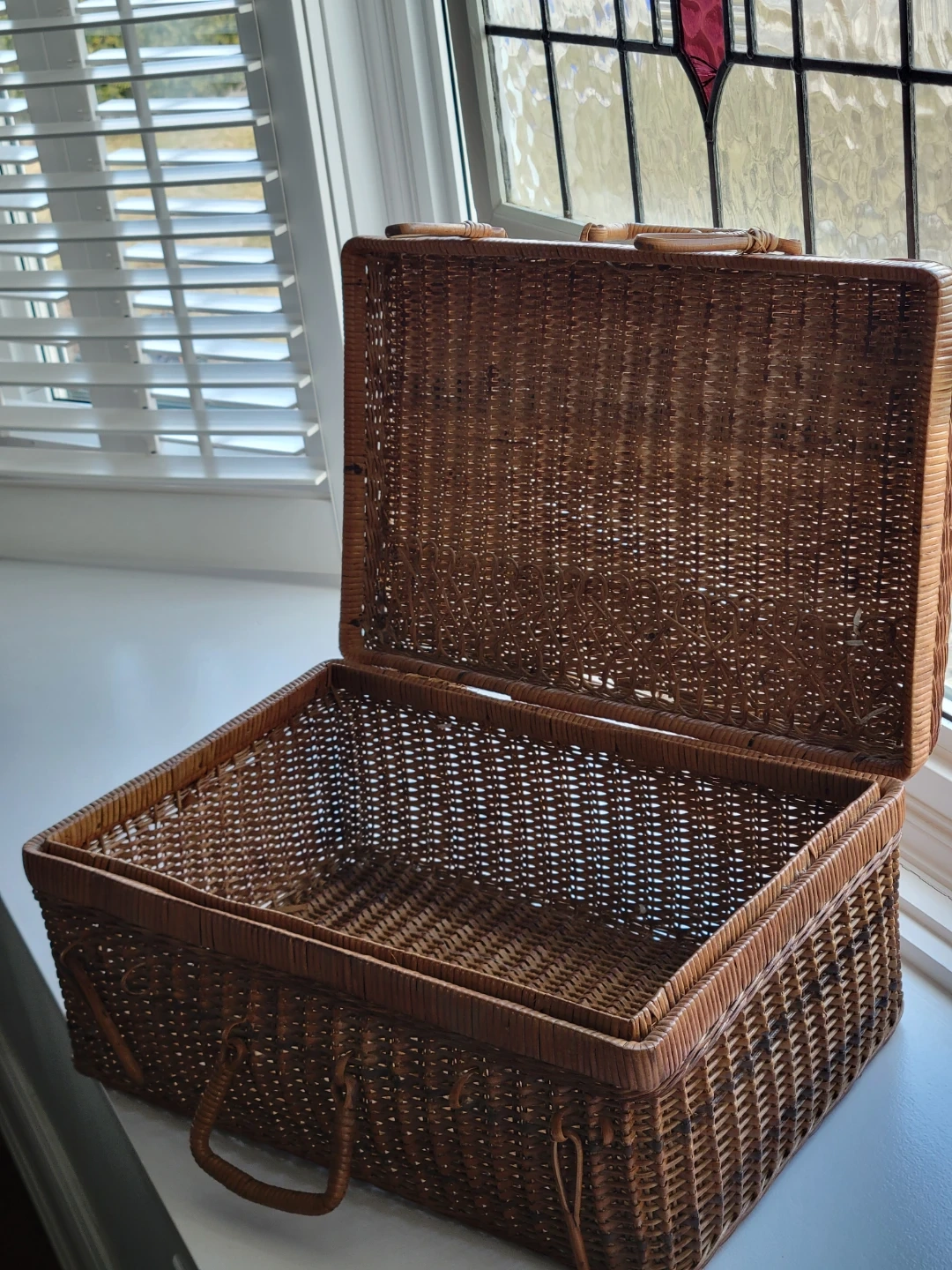 Vintage Wicker Picnic Basket. Wicker Storage Basket