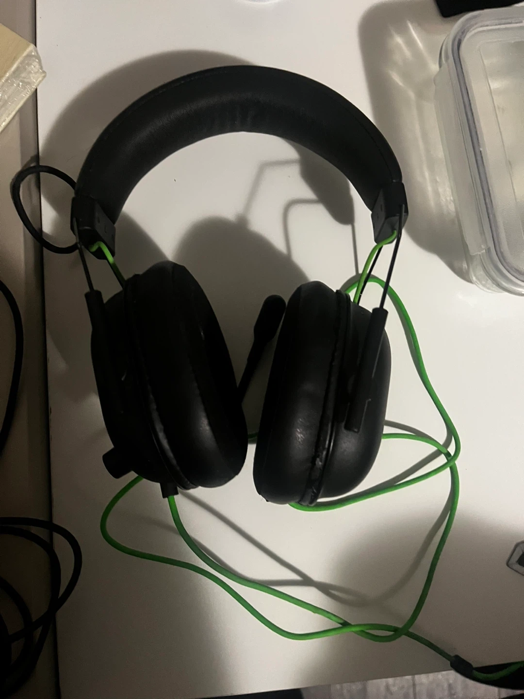 79Selling a Razer BlackShark V2 X gaming headset. It's in great condition and ready for a new home! Perfect for PC gaming or chatting with friends online. The green cable splits the mic and stereo.