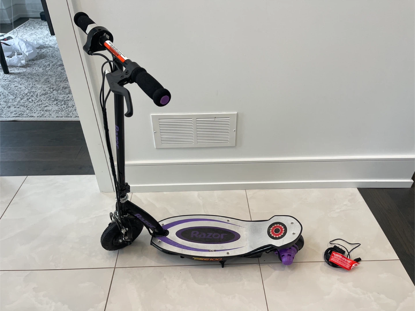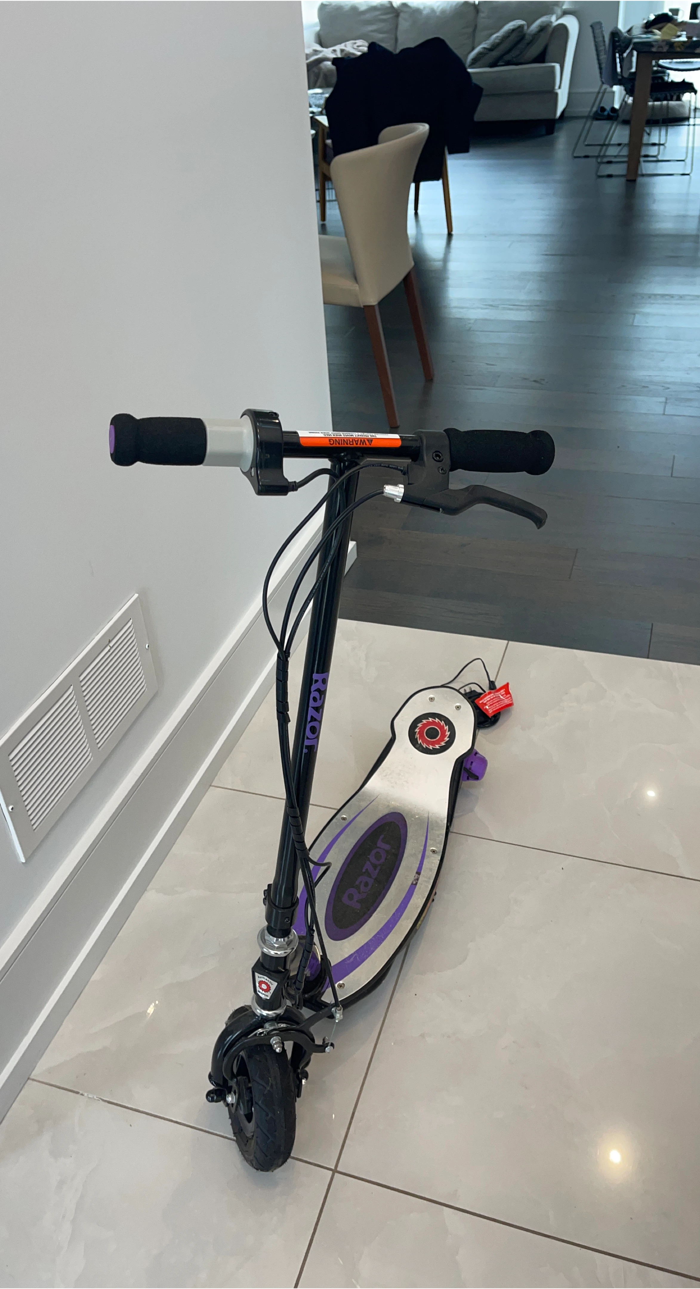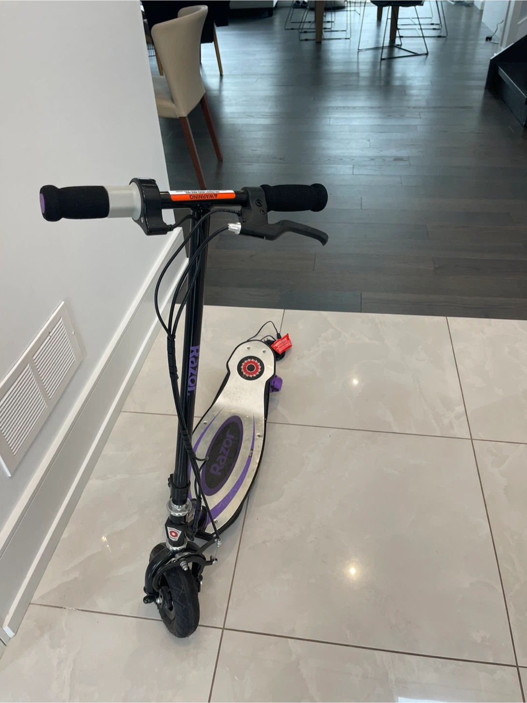 60Selling a Razor E100 electric rechargeable scooter! It's in great shape and ready for some fun rides. It comes with a charger so you can keep the adventures going!