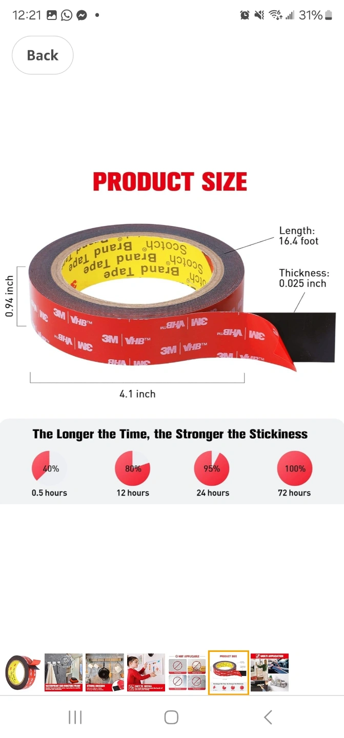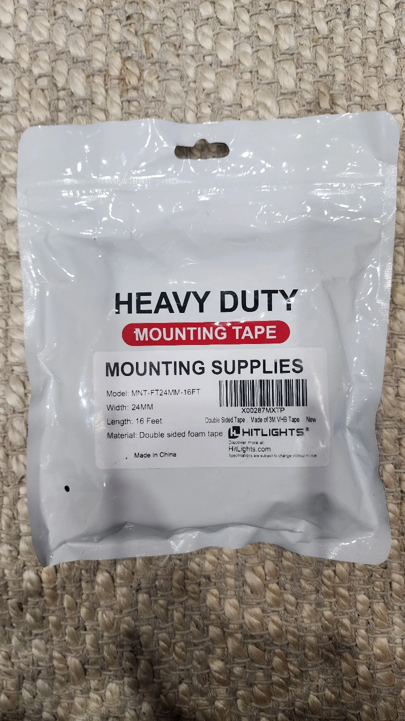 Heavy duty mounting tape. Double sided foam tape. 16 feet long. 24 MM width. Waterproof and moisture proof. Great for indoor and outdoor use. Easy to install, no tools required.