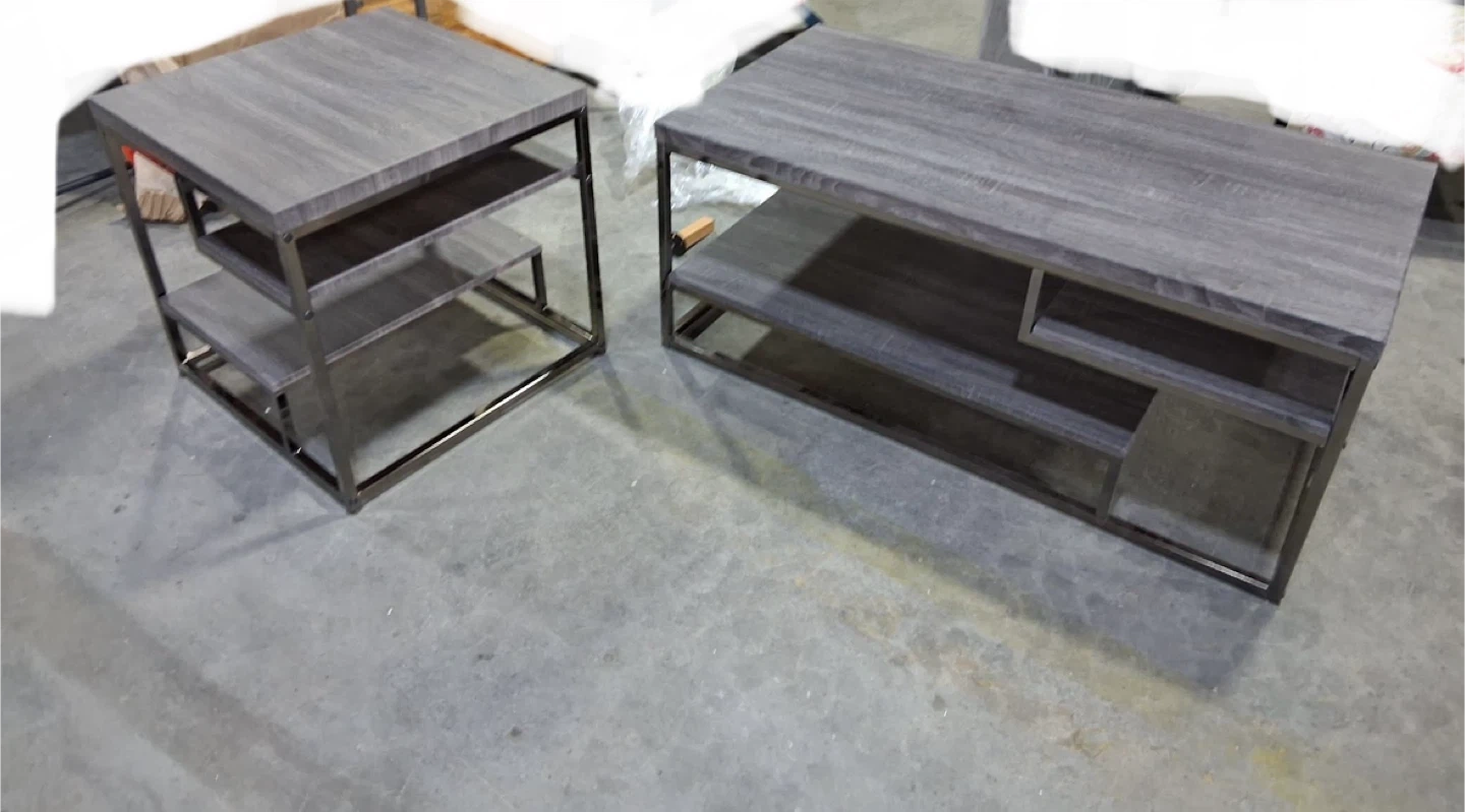 Set of 2 Modern Grey Wood and Metal End Table and Coffee Table