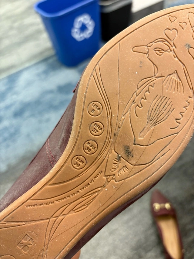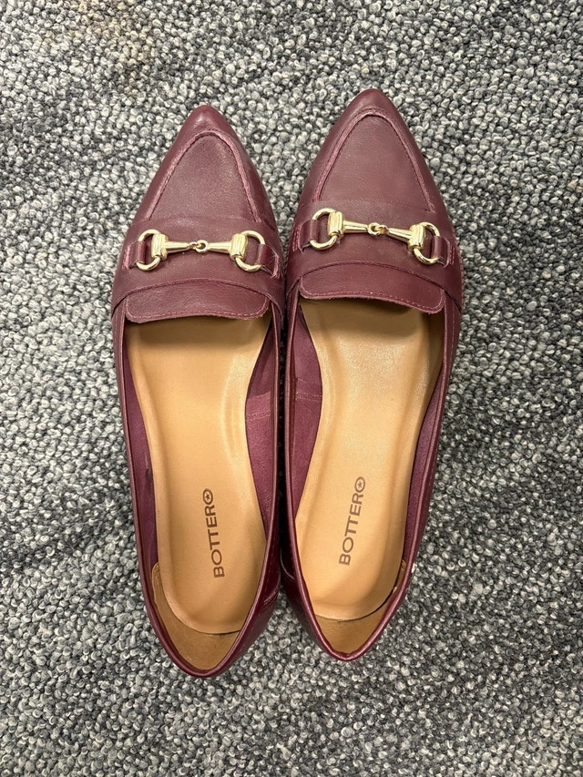 These are Bottero brand loafers, size 8, in a dark burgundy colour with gold hardware, perfect for adding a touch of sophistication to any outfit. These shoes have only been worn a couple of times, almost exclusively inside an office. Pick up at King and Portland or near Harbourfront Centre.