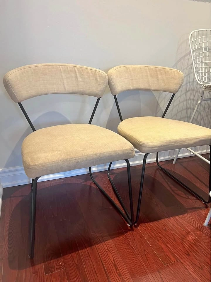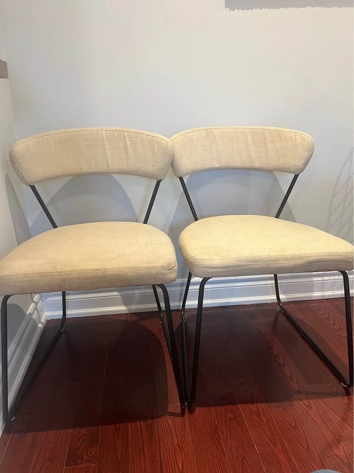 Two Beige Upholstered Dining Chairs (Priced for Pair)