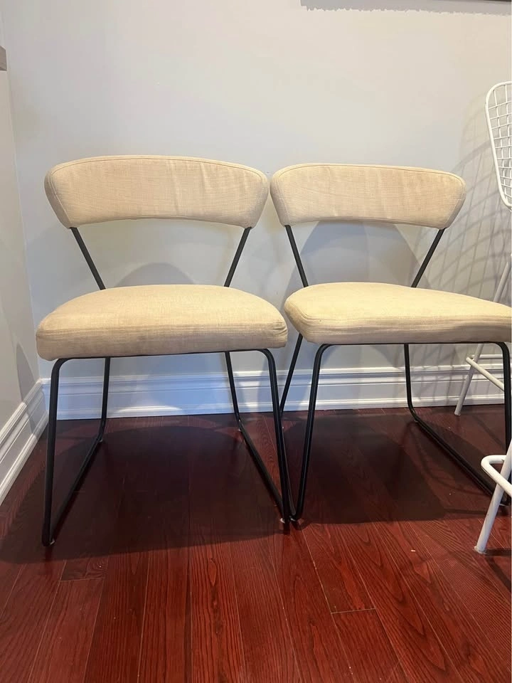 Two Beige Upholstered Dining Chairs (Priced for Pair)
