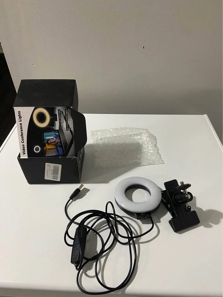 Handy LED ring light with clamp for easy attachment to your laptop or monitor. USB powered with in-line controls for brightness adjustment. Great for video calls, streaming, online classes, or remote work—helps improve lighting for a clear, professional look. Selling as is. Pickup: Ajax – Kingston Rd & Westney Rd, Scarborough – Ellesmere & Pharmacy.