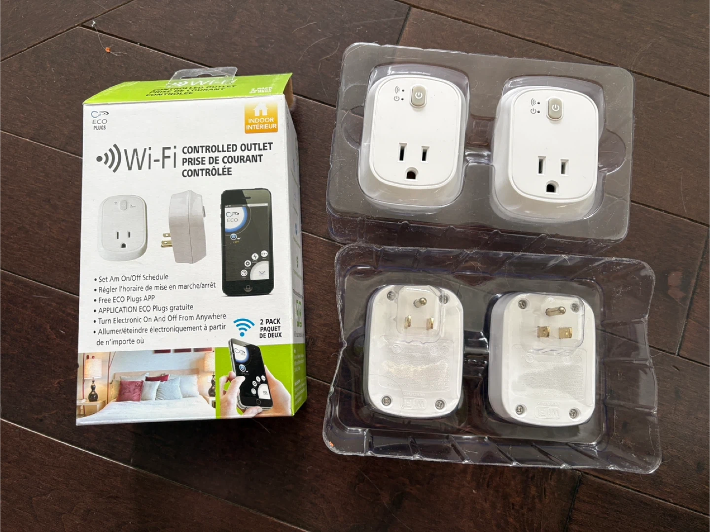 These Wi-Fi controlled outlets allow you to set on/off schedules and control electronics from anywhere using the free ECO Plugs app. They're designed for indoor use and support turning devices on and off electronically. This is a 4 pack set.