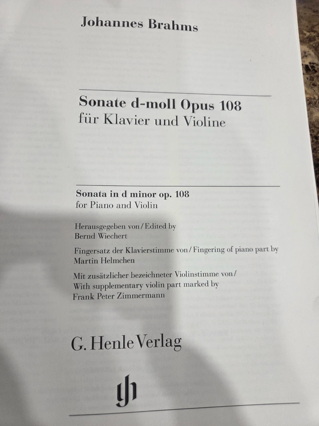 Brahms, Johannes - Violinsonate d-moll op. 108