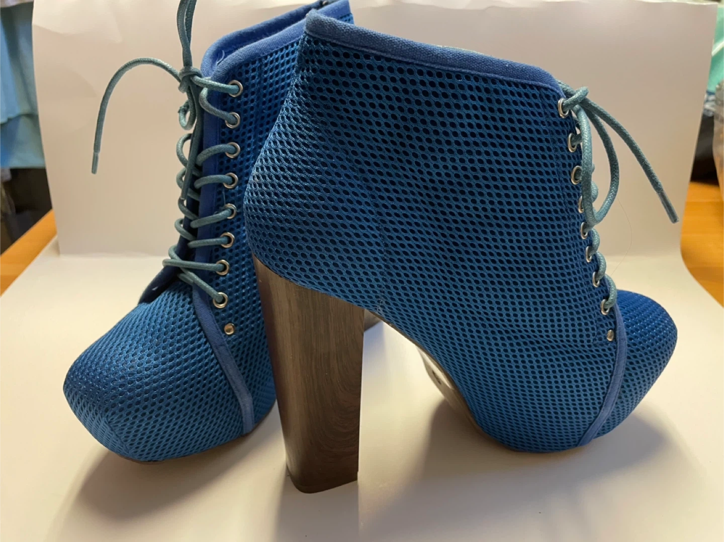 Blue Mesh Lace-Up Heels