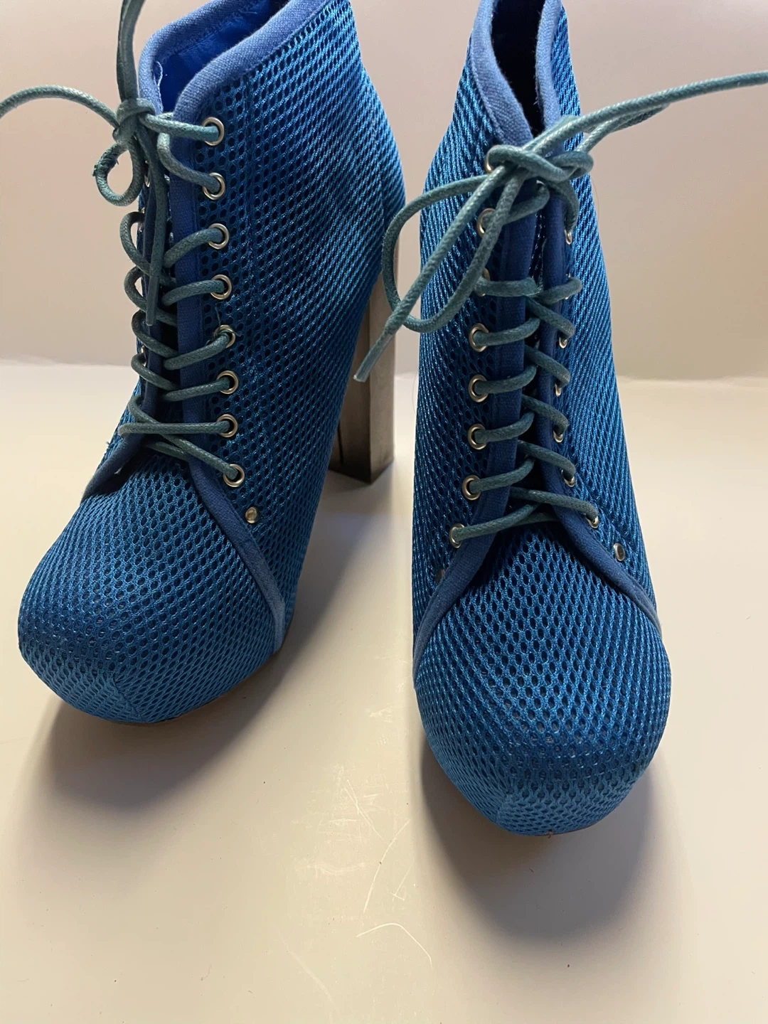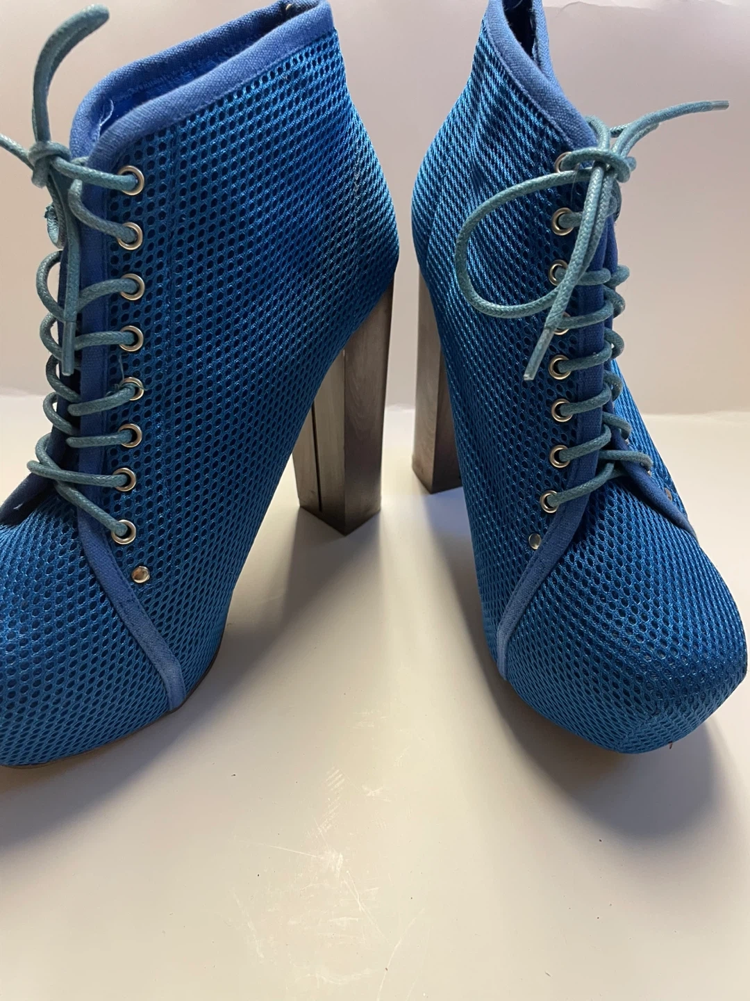 Blue Mesh Lace-Up Heels