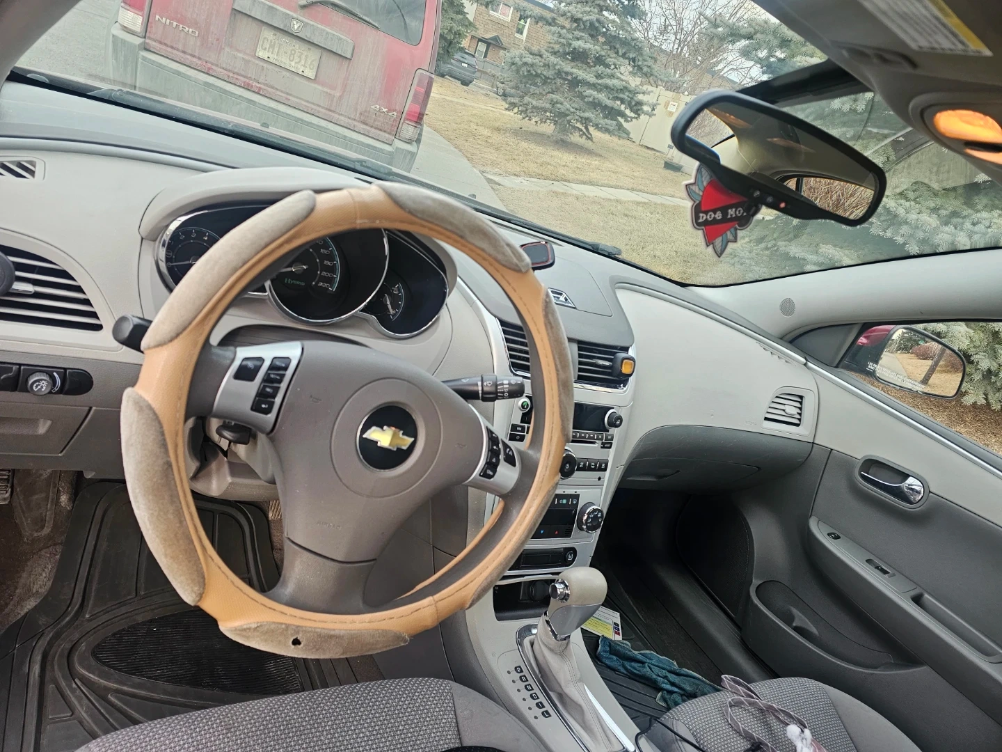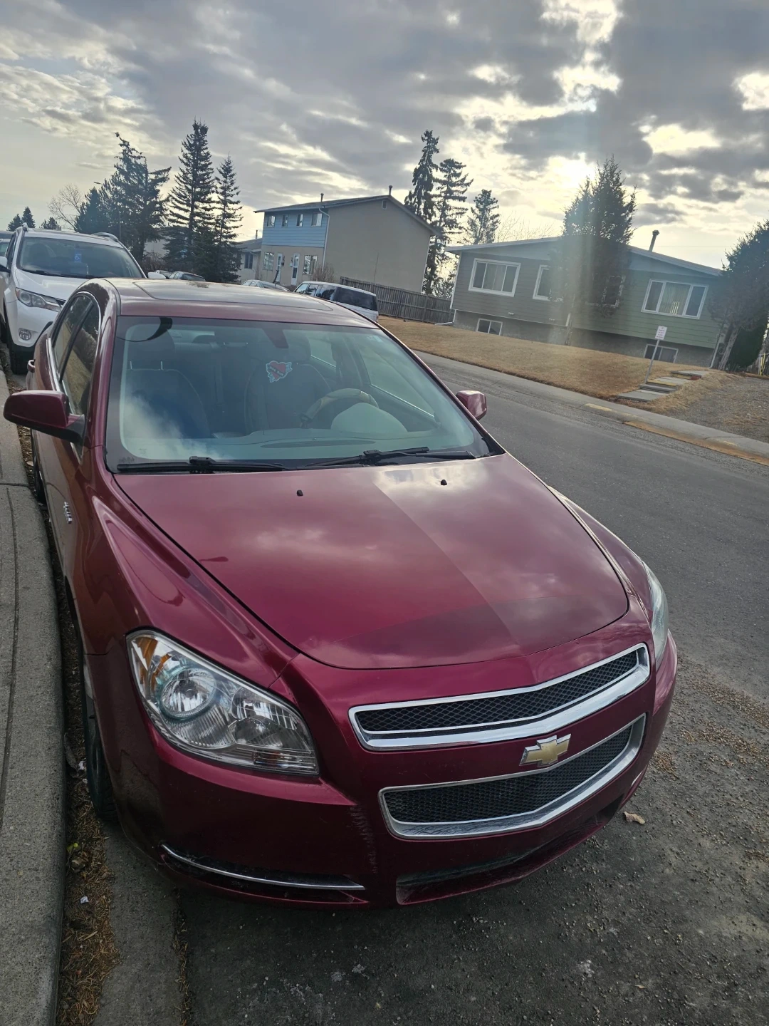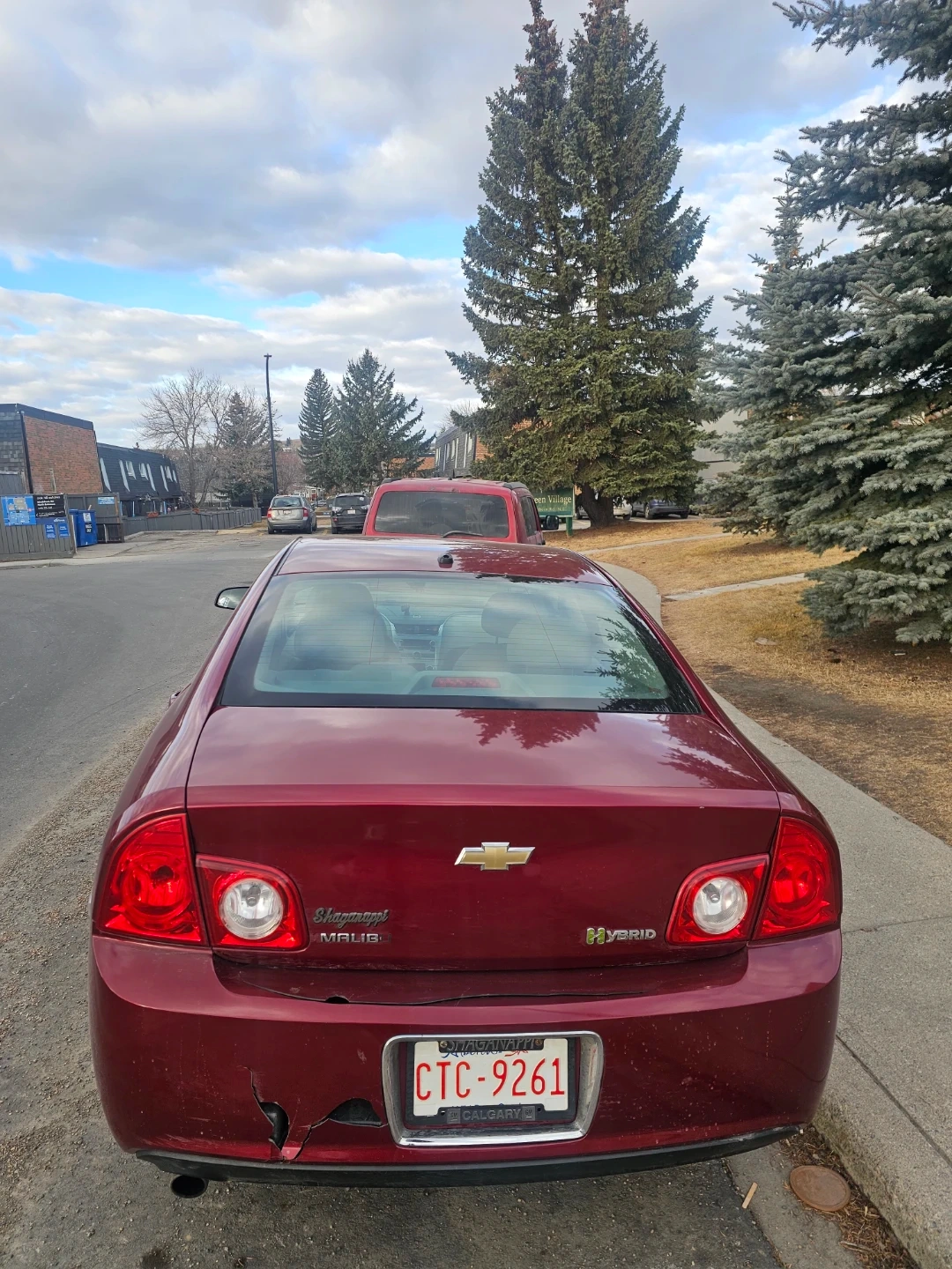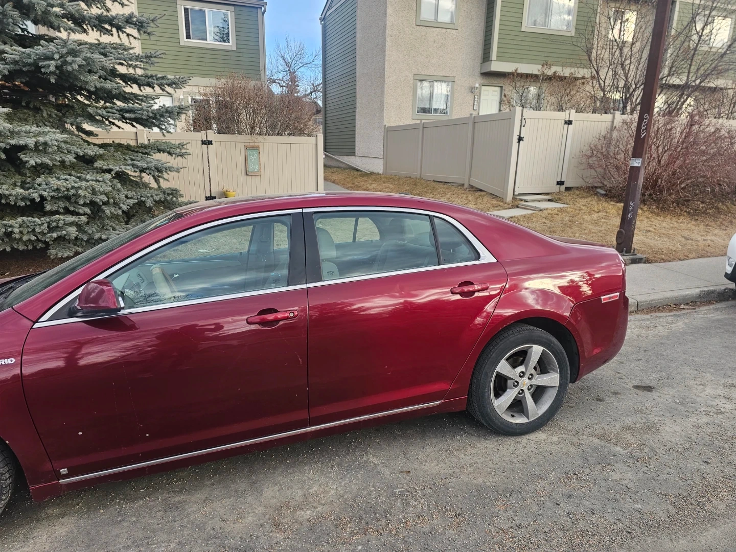 This is a 2010 Chevrolet Malibu Hybrid sedan. It's a four-door car with a red exterior. The interior is a light beige colour. Mileage and engine details are not provided.