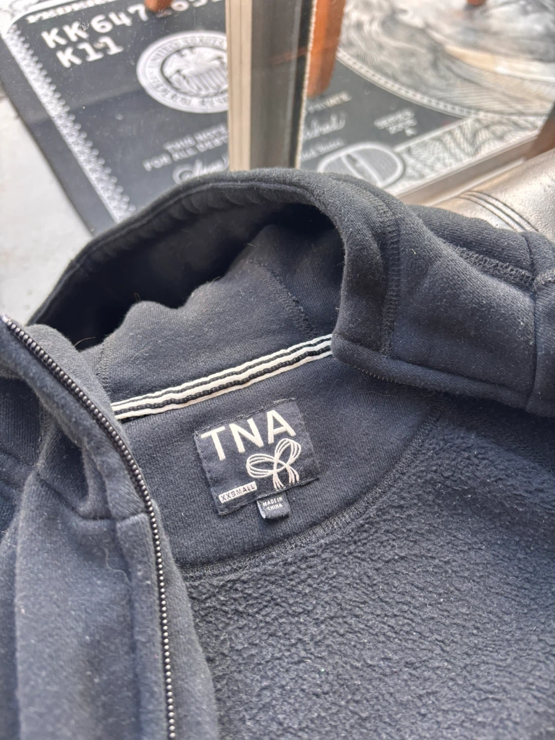 This is a TNA Parklife full zip hoodie. It's made of a comfortable material for everyday wear. This hoodie is great for layering during cooler weather!
