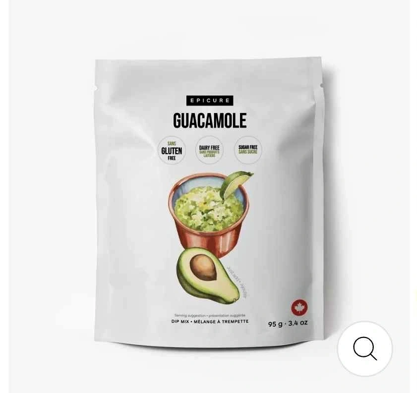 New Epicure Guacamole Dip Mix. Great for snacks. Gluten free, dairy free, sugar free. Comes in 95g (3.4 oz) pouch. Gluten free, Nut Free, Non-GMO, Low sodium, Vegan, Dairy Free, Soy Free. Make guacamole in seconds by adding just 2 ingredients to the mix (avocados and a splash of lime). Use as a super versatile seasoning for bean salad, fish and seafood, eggs, grains, and the perfect avocado toast.