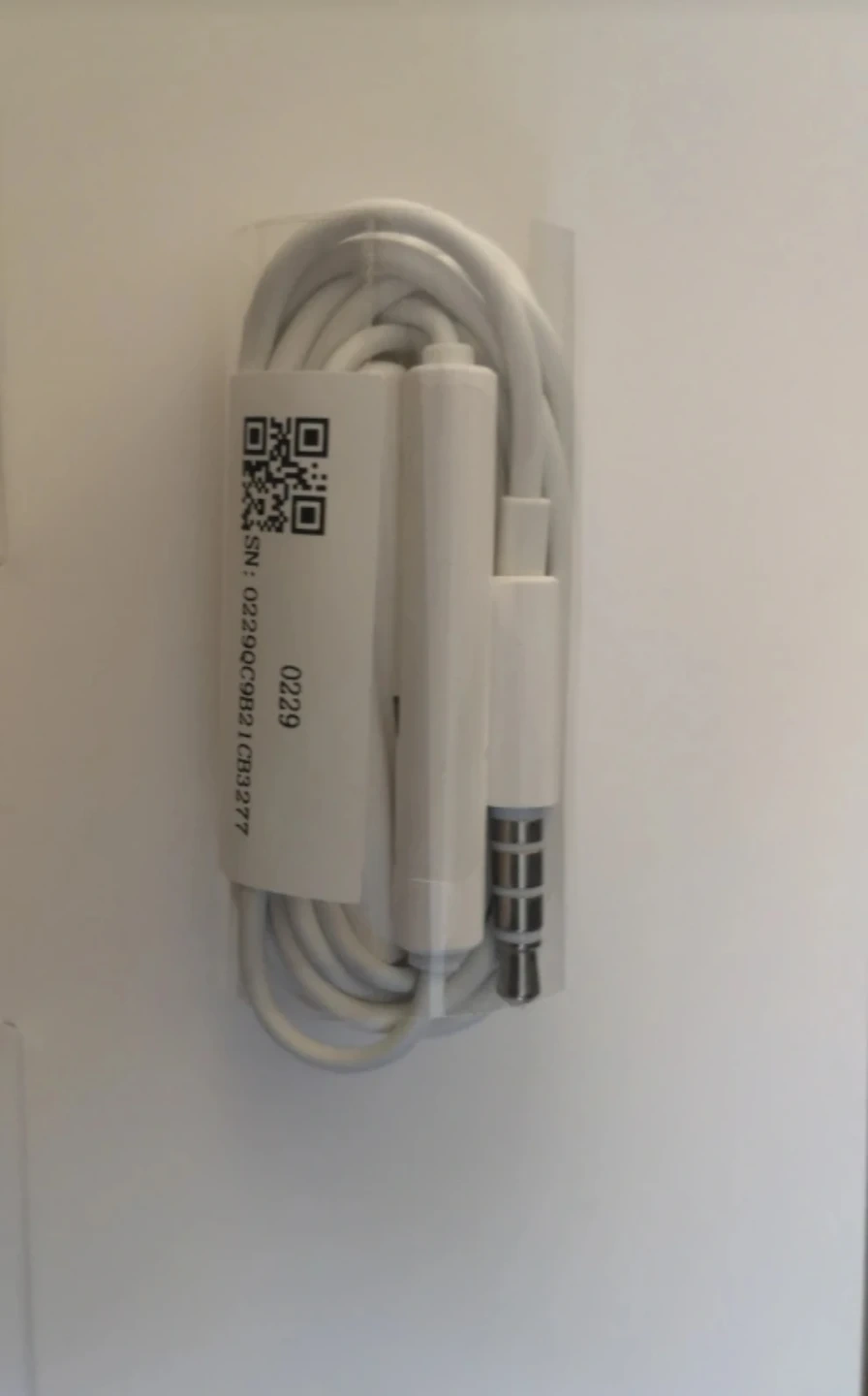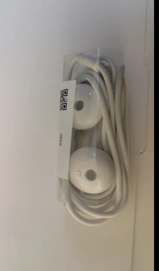 White wired earbuds with a 3.5mm jack. Includes an inline microphone for calls. These earbuds are great for listening to music or taking calls on the go! There is volume adjust on it.