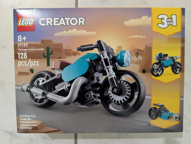 Buy & SellRETIRED LEGO CREATOR Vintage Motorcycle 31135RETIRED LEGO CREATOR Vintage Motorcycle 31135$20Brand new in original box. LEGO Creator Vintage Motorcycle 31135. Check my profile for more LEGO.WHERE TO MEETCheck LocationView MapSELLERKaiCooksville524 reviews0 chats·0 favorites·6 viewsSEND CHAT TO SELLERHi Kai! I’m interested in your listing.Hi Kai! I’m interested in your listing.Get the Karrot app to chatSign In to chat