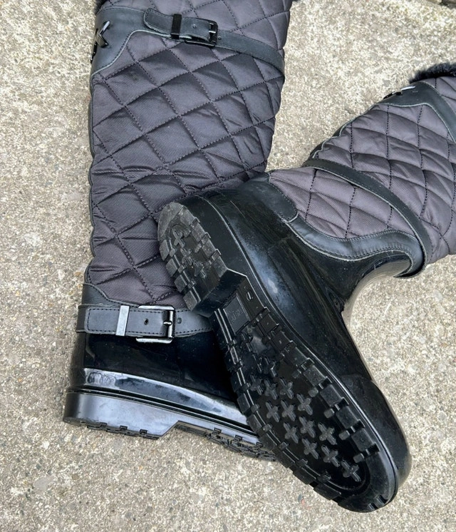 These stylish Michael Kors black winter boots are perfect for keeping your feet warm and dry this winter! These are size 7. These are used, and do have some minor signs of wear. Brand: Michael Kors Colour: Black Size: 7 I'm just decluttering my closet to make more space! If the ad is still up, you know the item is still available for purchase, eh!