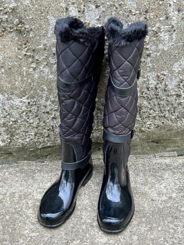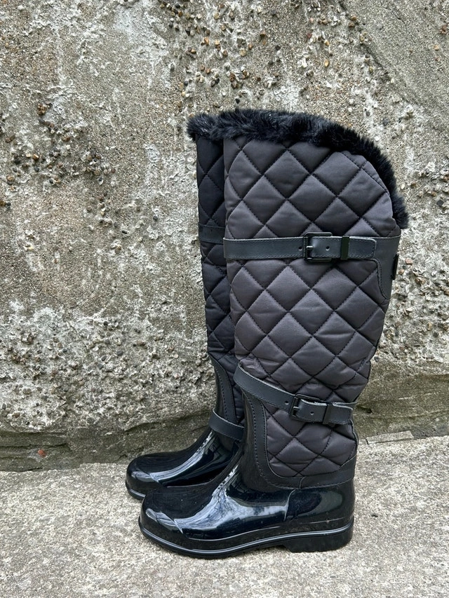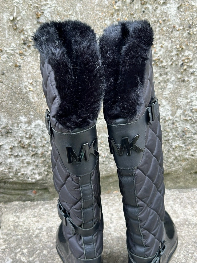 These stylish Michael Kors black winter boots are perfect for keeping your feet warm and dry this winter! These are size 7. These are used, and do have some minor signs of wear. Brand: Michael Kors Colour: Black Size: 7 I'm just decluttering my closet to make more space! If the ad is still up, you know the item is still available for purchase, eh!