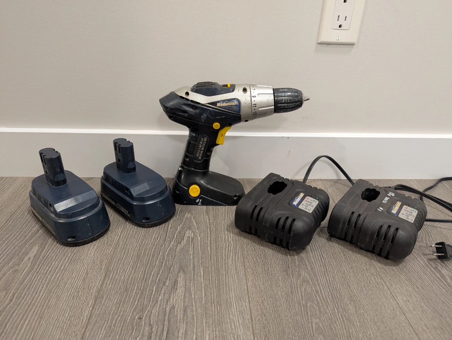 Selling a Mastercraft 18V cordless drill. It comes with two batteries and two chargers. Great for various projects around the house!