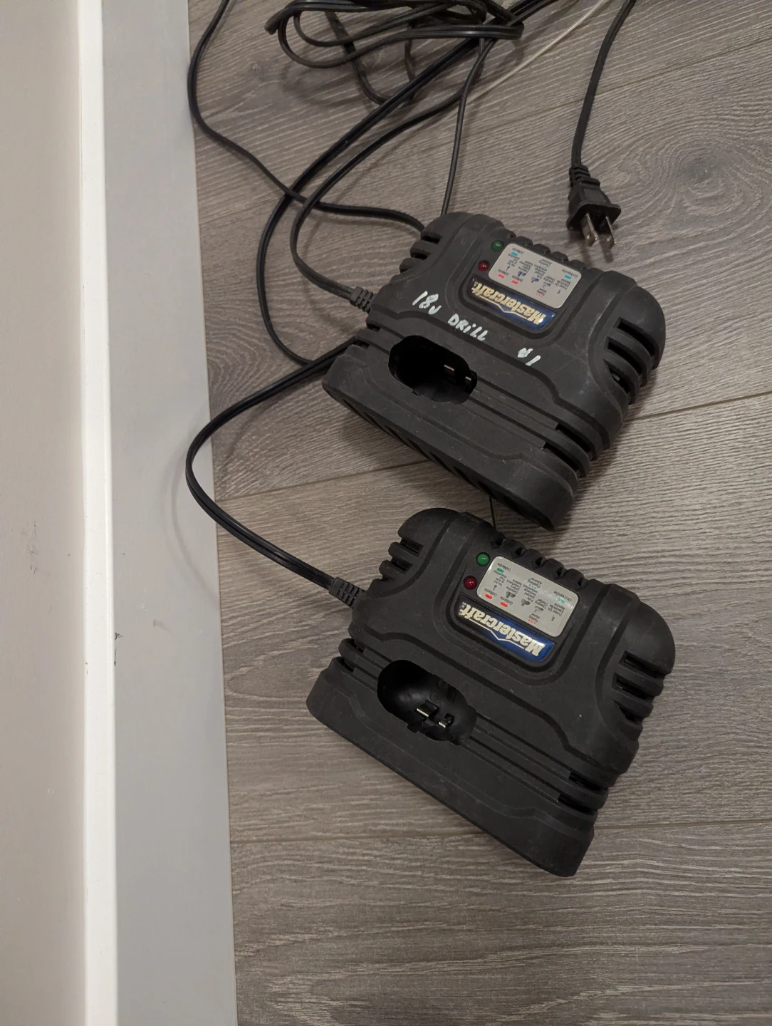 Selling a Mastercraft 18V cordless drill. It comes with two batteries and two chargers. Great for various projects around the house!