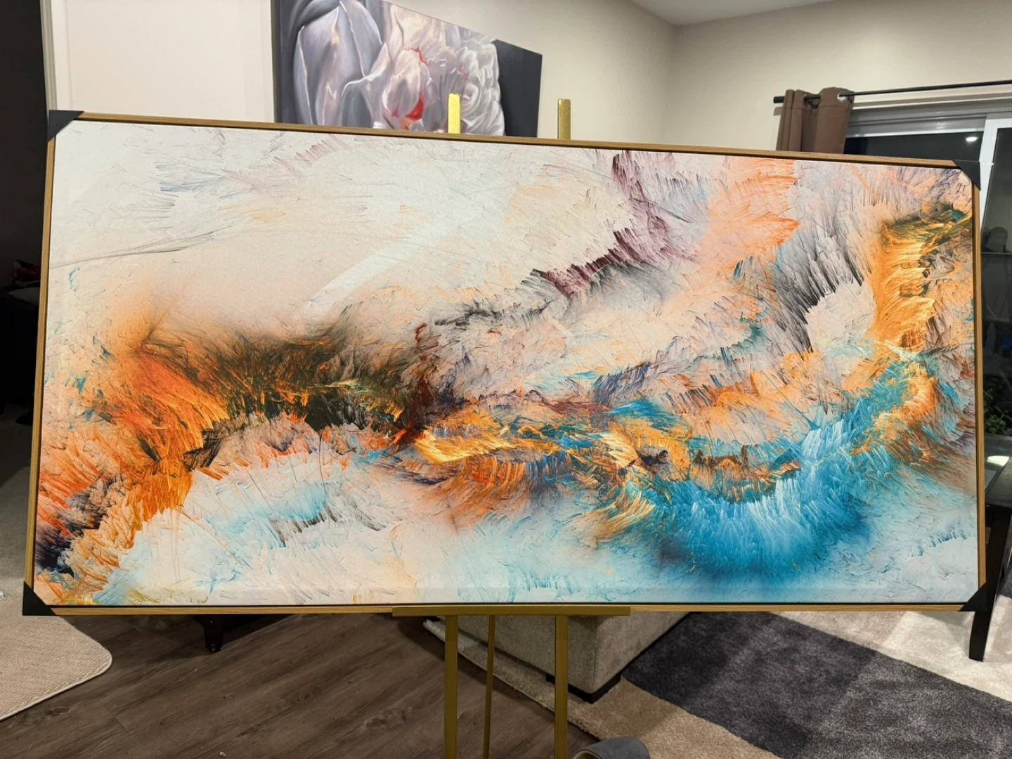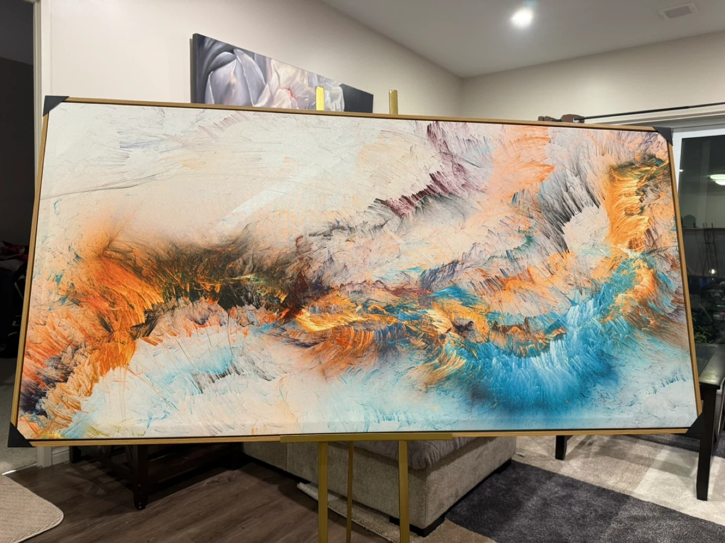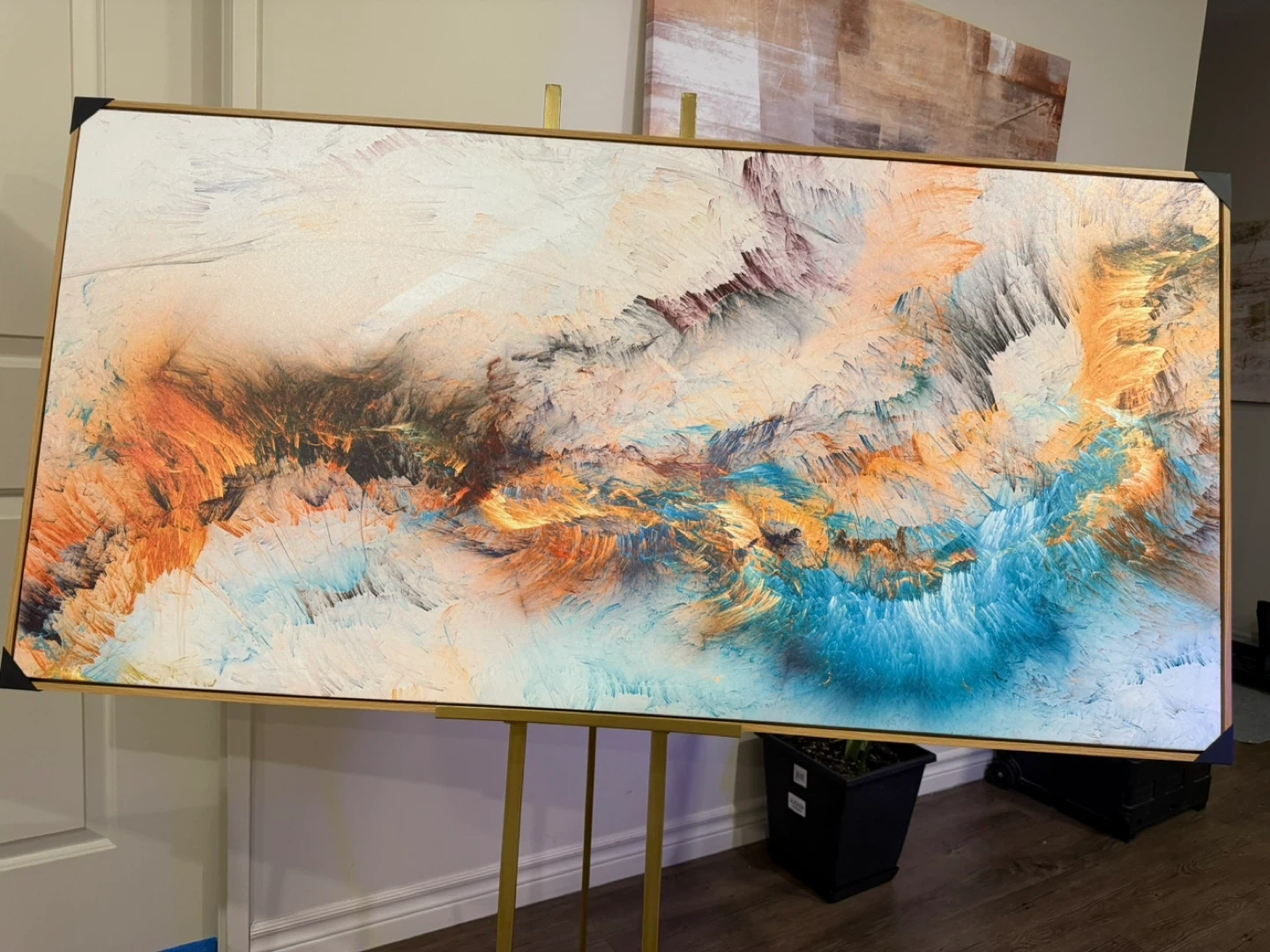 Selling a beautiful abstract canvas painting. The colours are vibrant and would look great in any room! It's in excellent condition and ready to hang