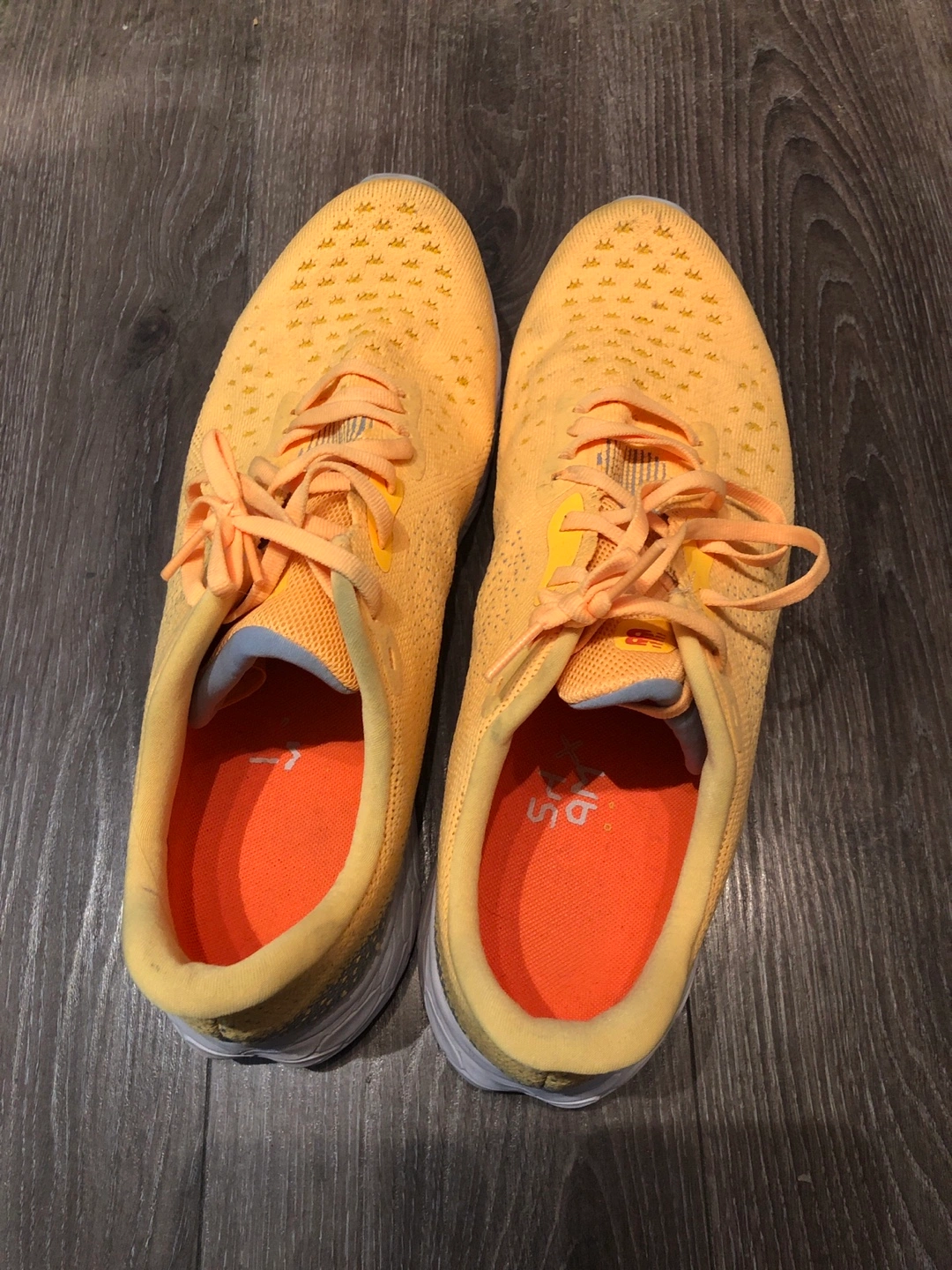 Yellow running shoes, size 11.5 US men's.