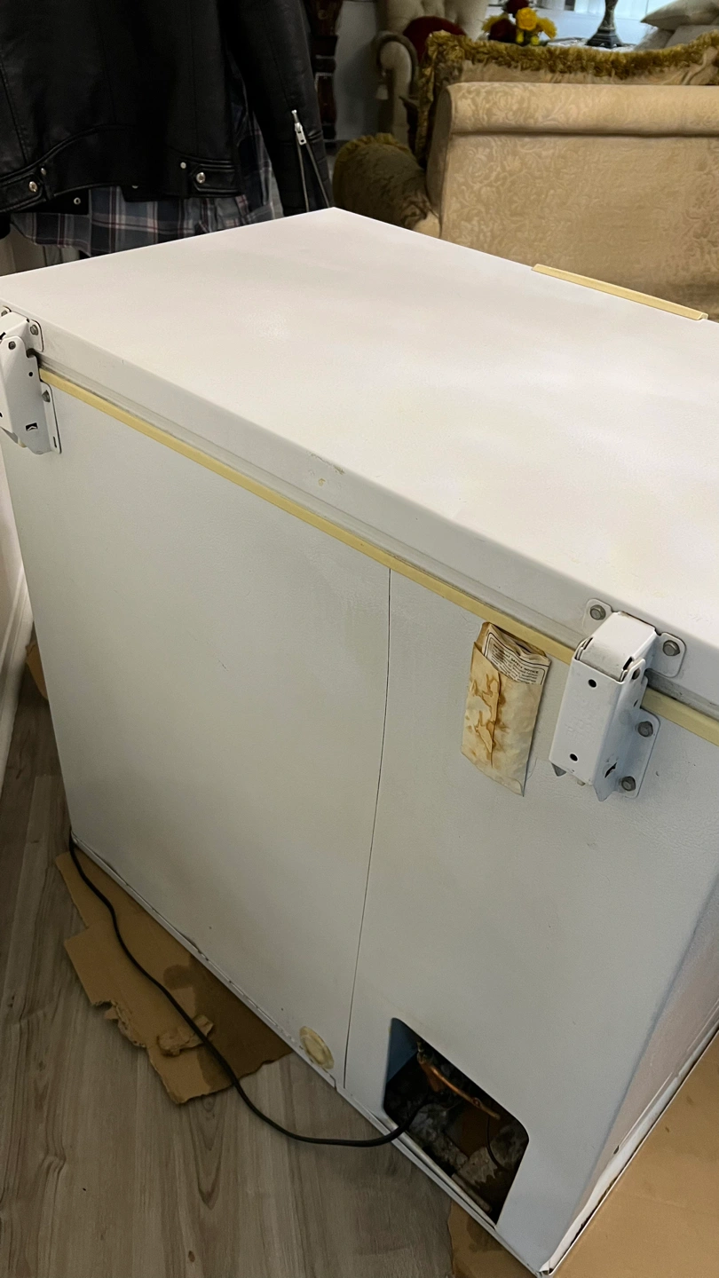 It has a dent on the left back corner from when we moved but it doesn’t effect it’s working condition selling it because I need a larger one