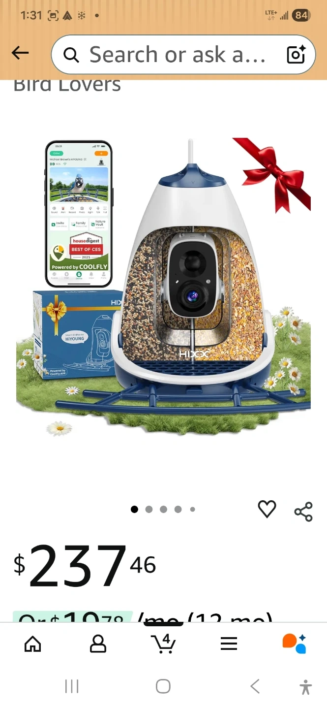 This smart bird feeder lets you watch and record birds in your yard. It's bird-friendly and comes with a 2.5K HD camera and a 3W solar panel. Connect and share your bird sightings with other bird lovers via the app!
