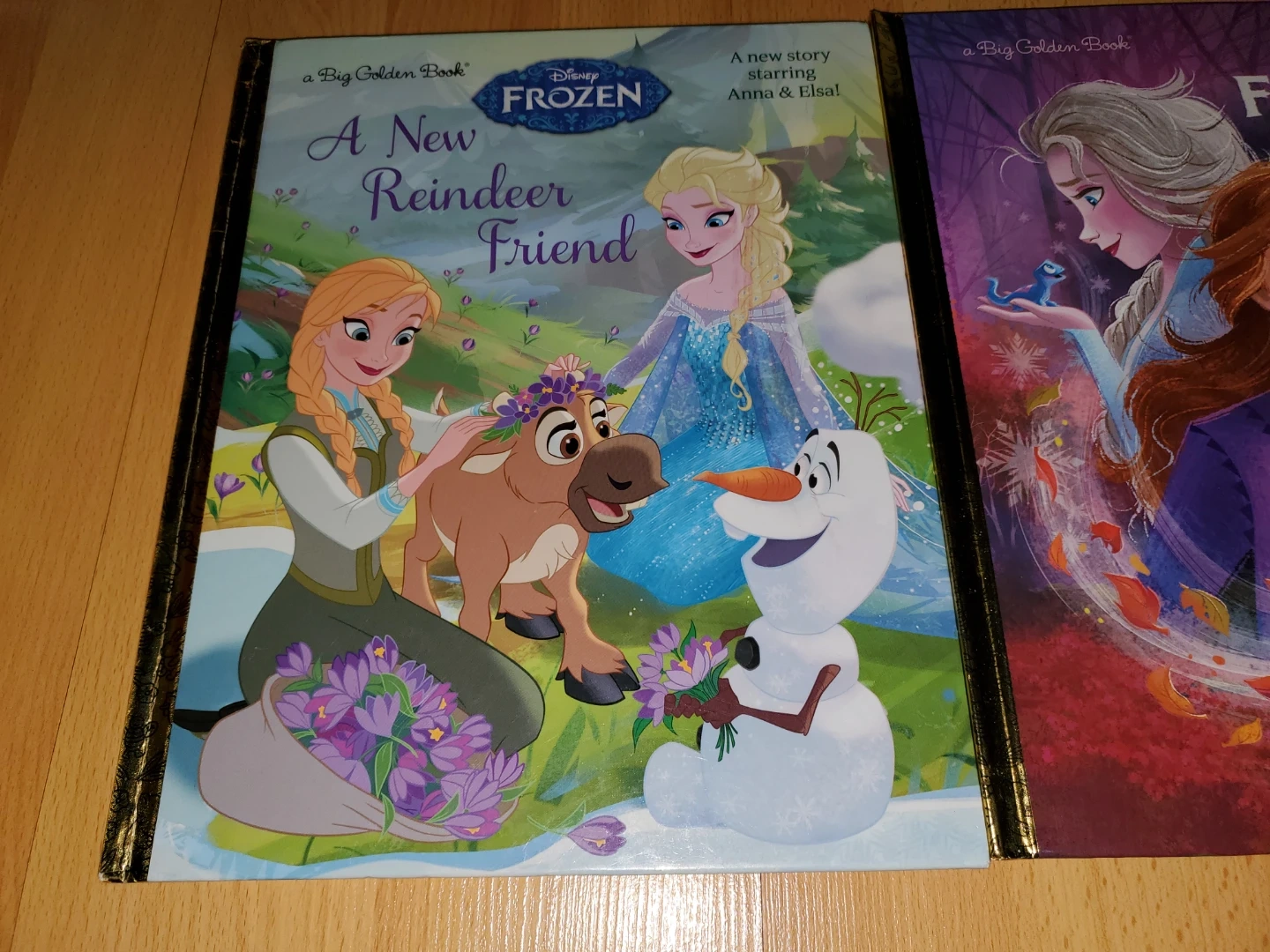 One is titled 'A New Reindeer Friend' and the other is based on 'Frozen II'. These books are great for young fans of the movies.