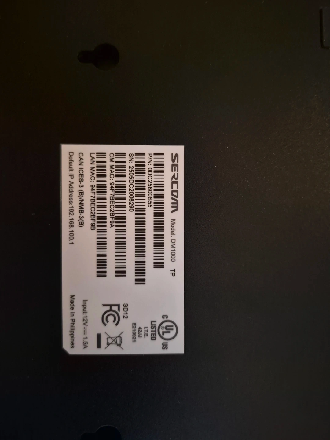 Sercomm LD M1000 TP modem for sale. It's a DOCSIS 3.0 cable modem with LTE support. Input is 12V 1.5A.