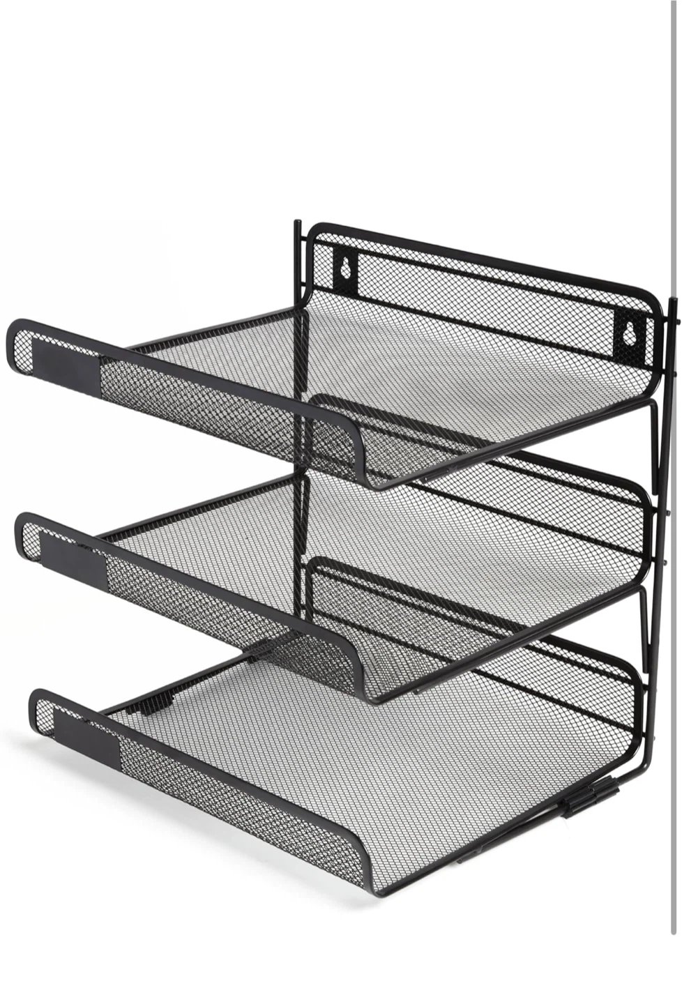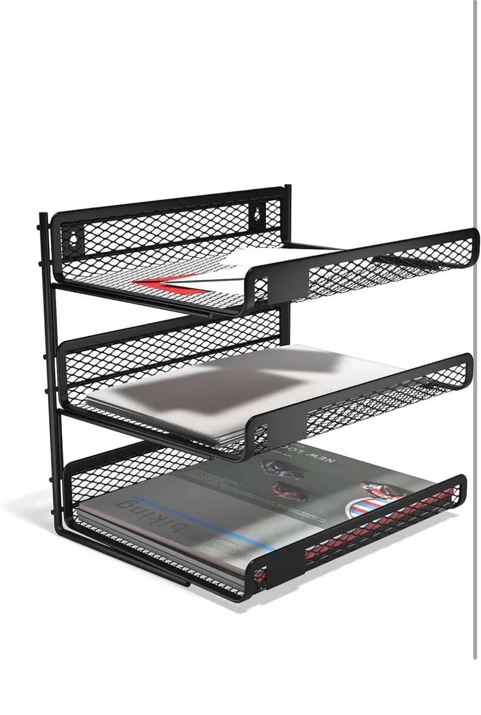 Declutter your workspace with this handy black mesh desk organizer! It features three tiers, providing ample space for files, documents, and other office essentials. The mesh design keeps everything visible and easily accessible. Great for keeping your desk tidy and efficient!