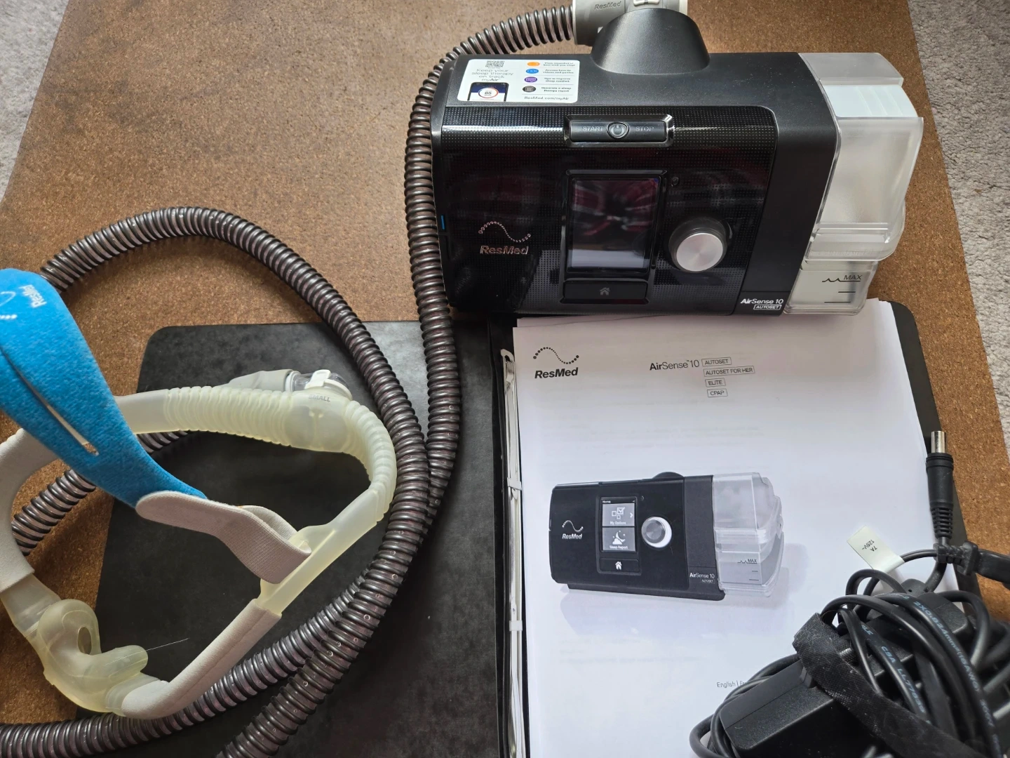 This unit is used to relieve sleep apnea. Includes main unit, tubing, power supply, face mask (sz.small) & instructions. Used just a handful of times as elderly lady passed away. Cleaned/sterilized.