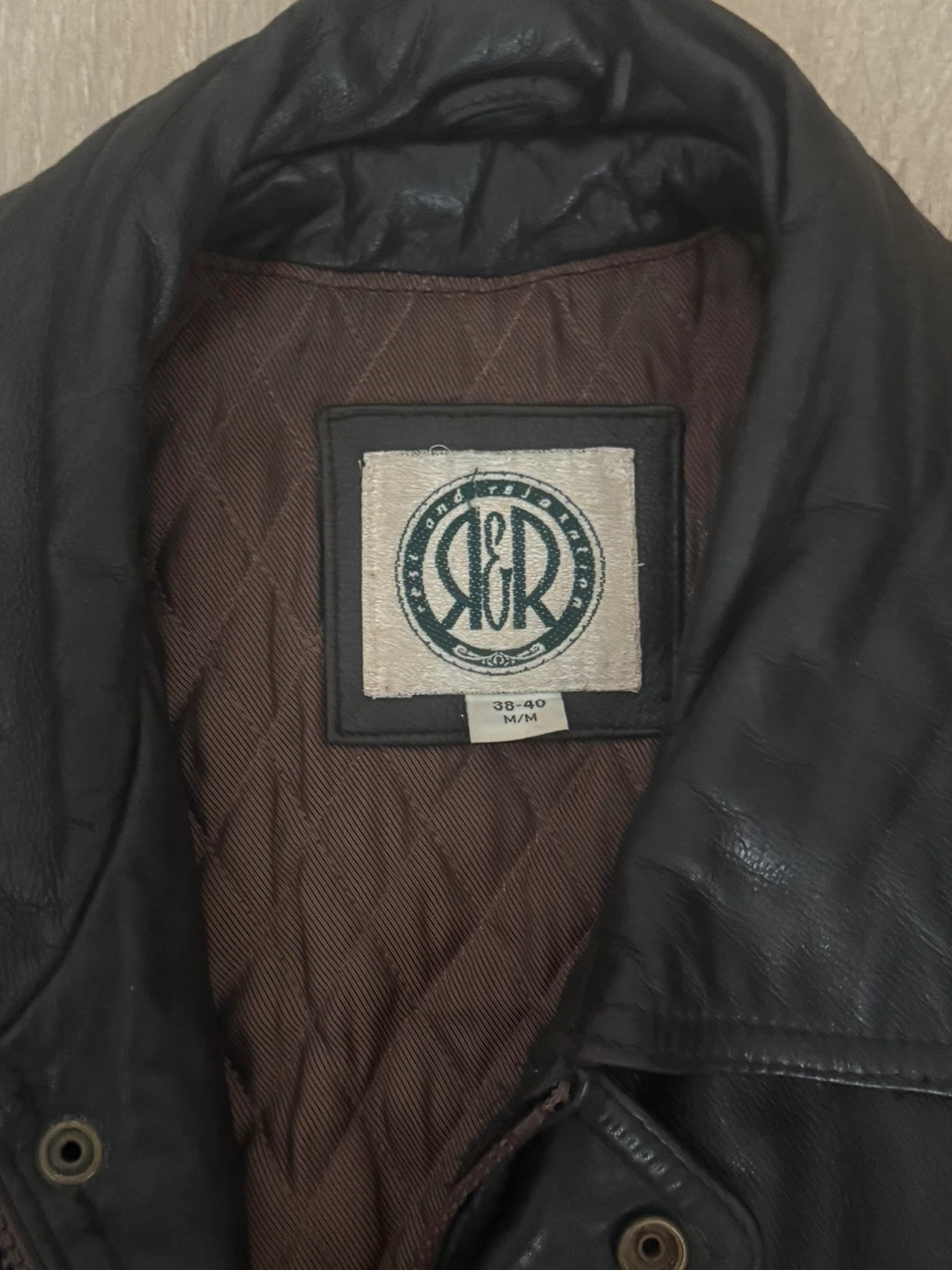 Classic R&R leather bomber jacket in size M/M. Features a 100% leather shell. This jacket offers a timeless style and durable construction. It's a great choice for everyday wear! Selling it since its so oversized on me and im a student in need atm.